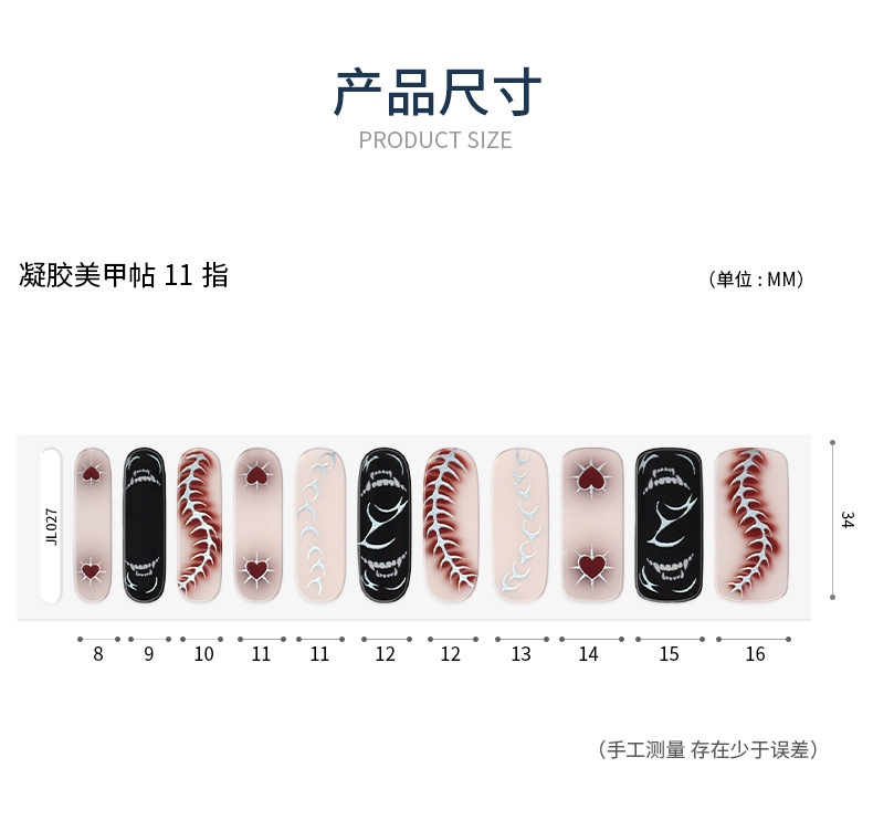 국경 간 뜨거운 판매 재미 있은 할로윈 UV 젤 네일 스티커 만화 손으로 그린 시리즈 조명 반 경화 네일 스티커