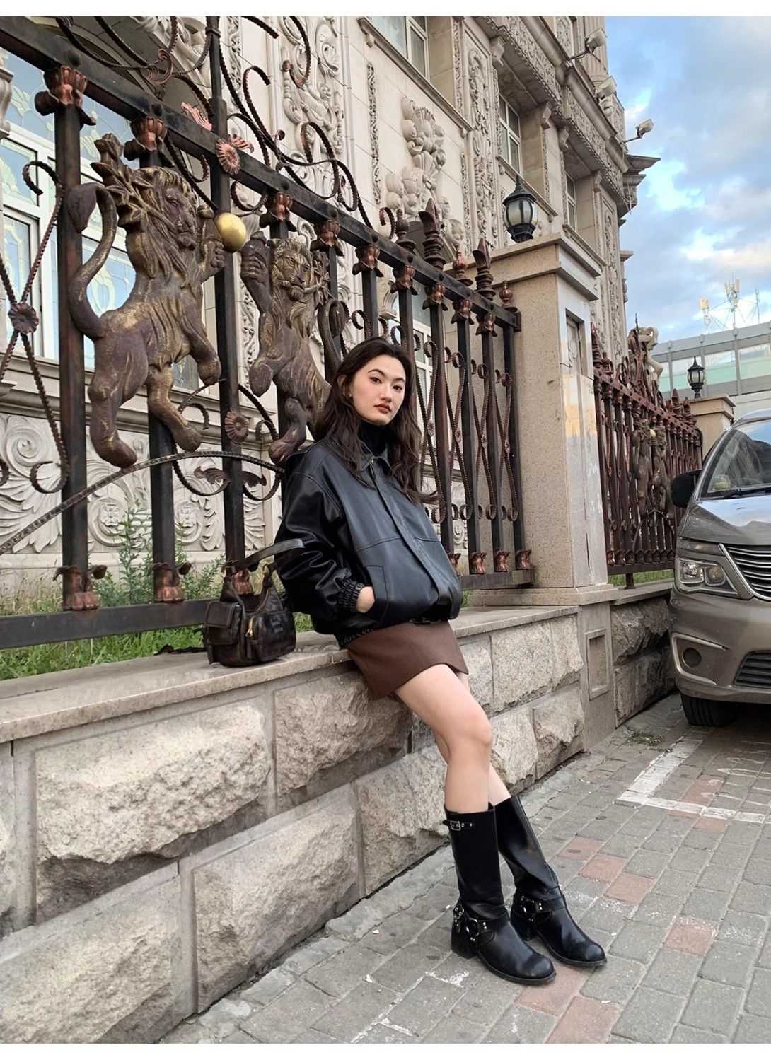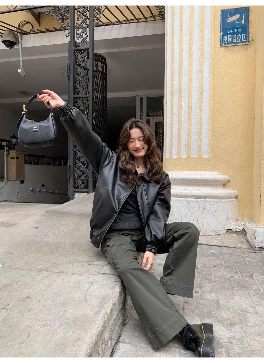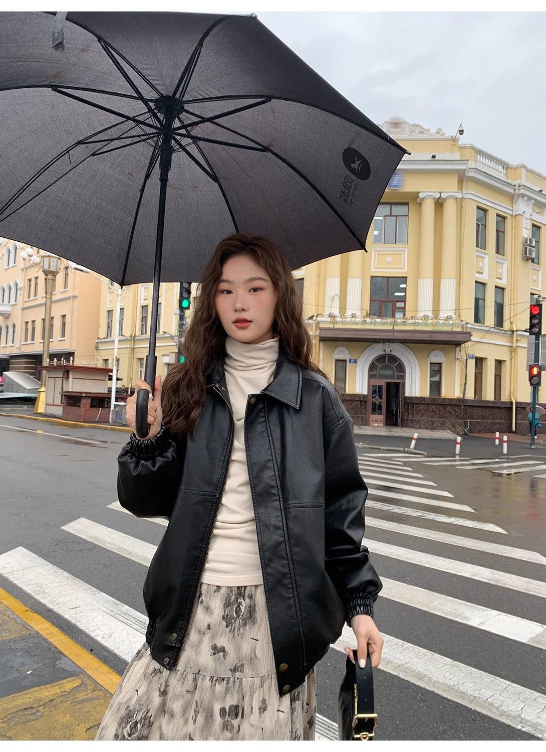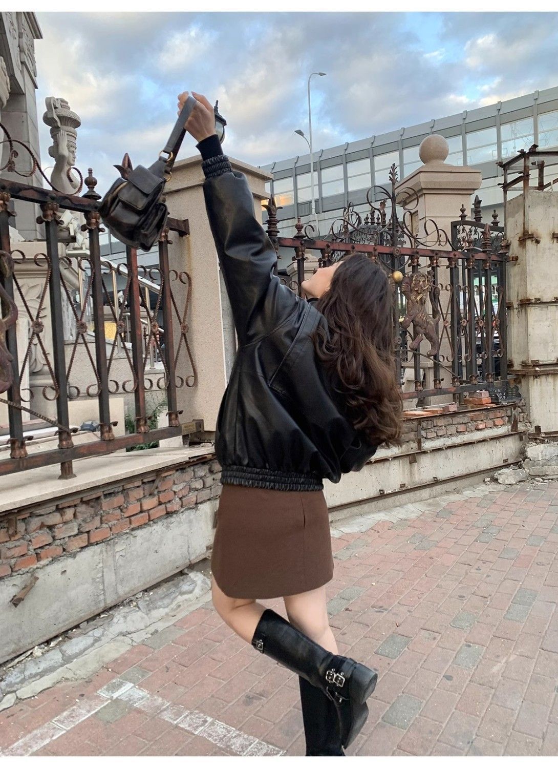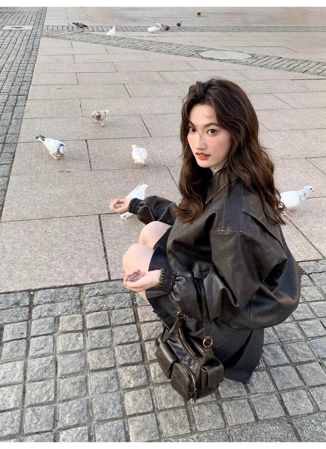 여성을위한 미국 갈색 복고풍 오래된 느슨한 가죽 자켓 봄, 가을 2025 새로운 느슨한 한국 스타일 따뜻한 자켓 유행스토어 가기