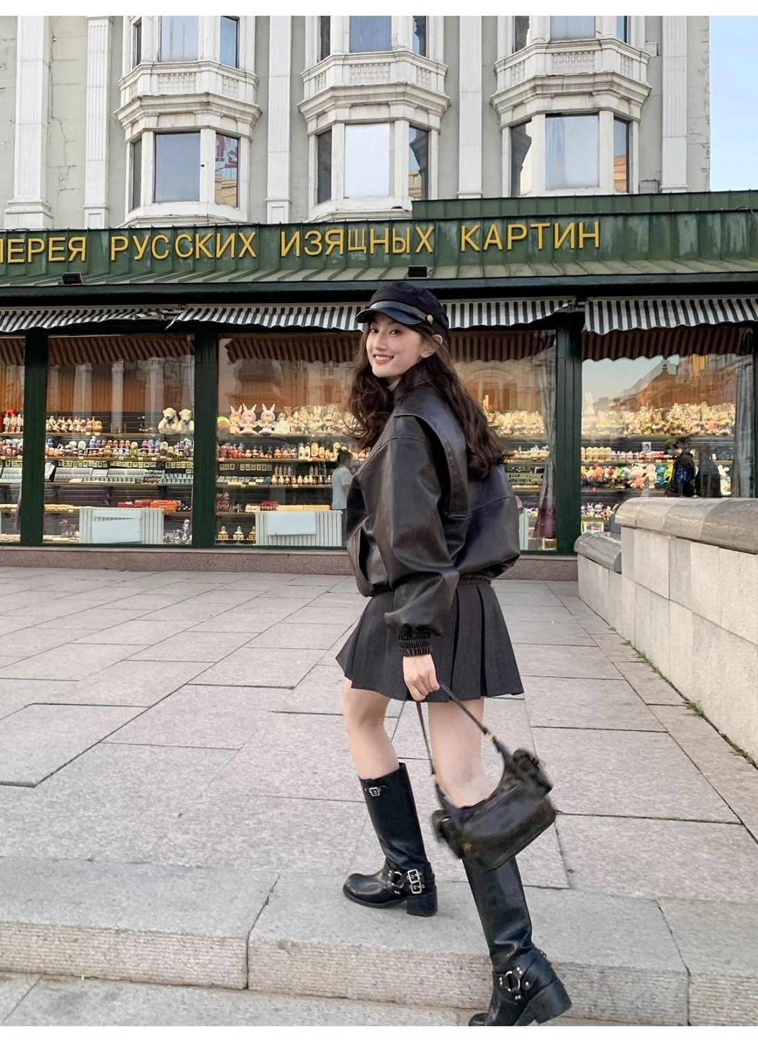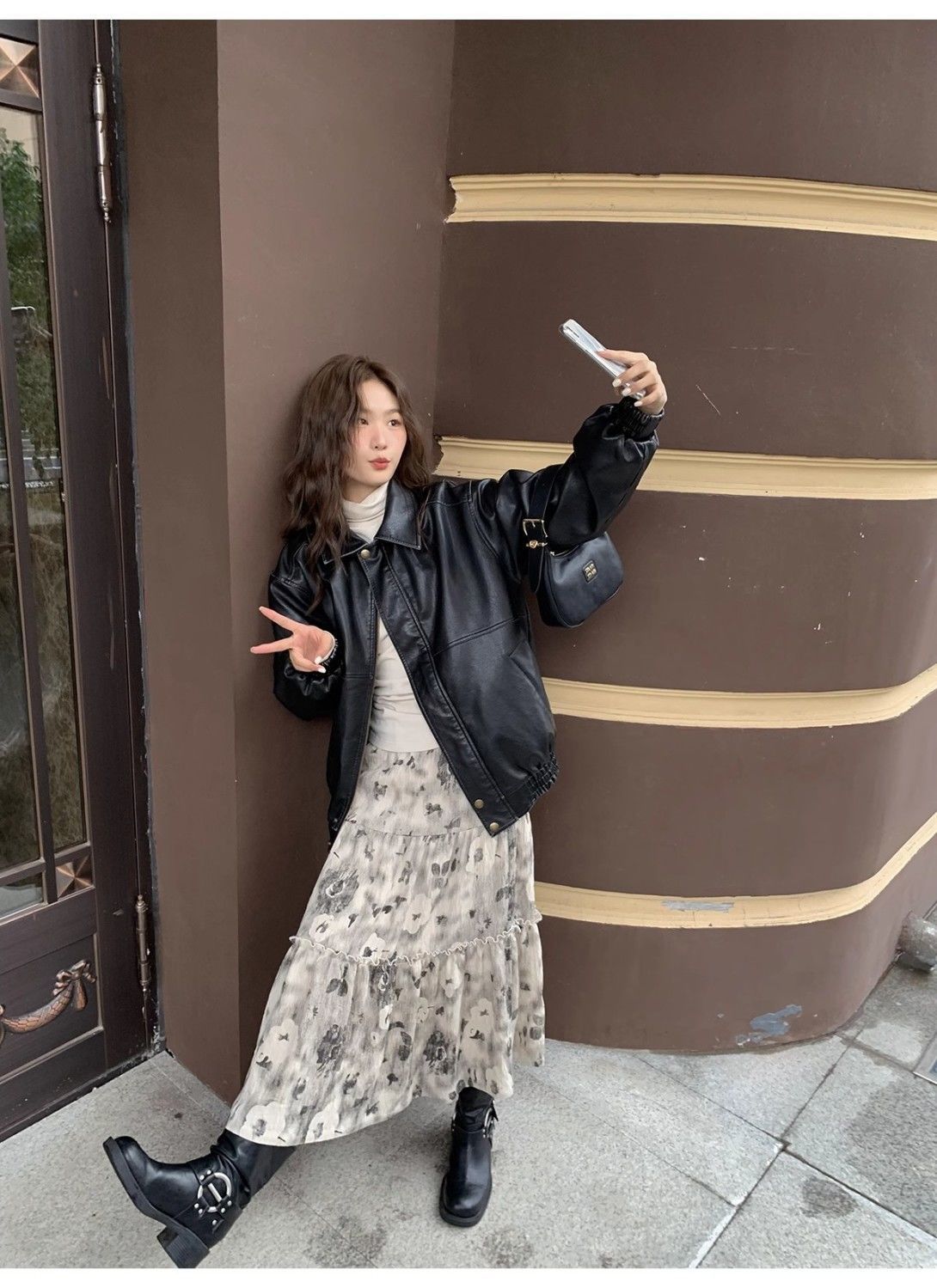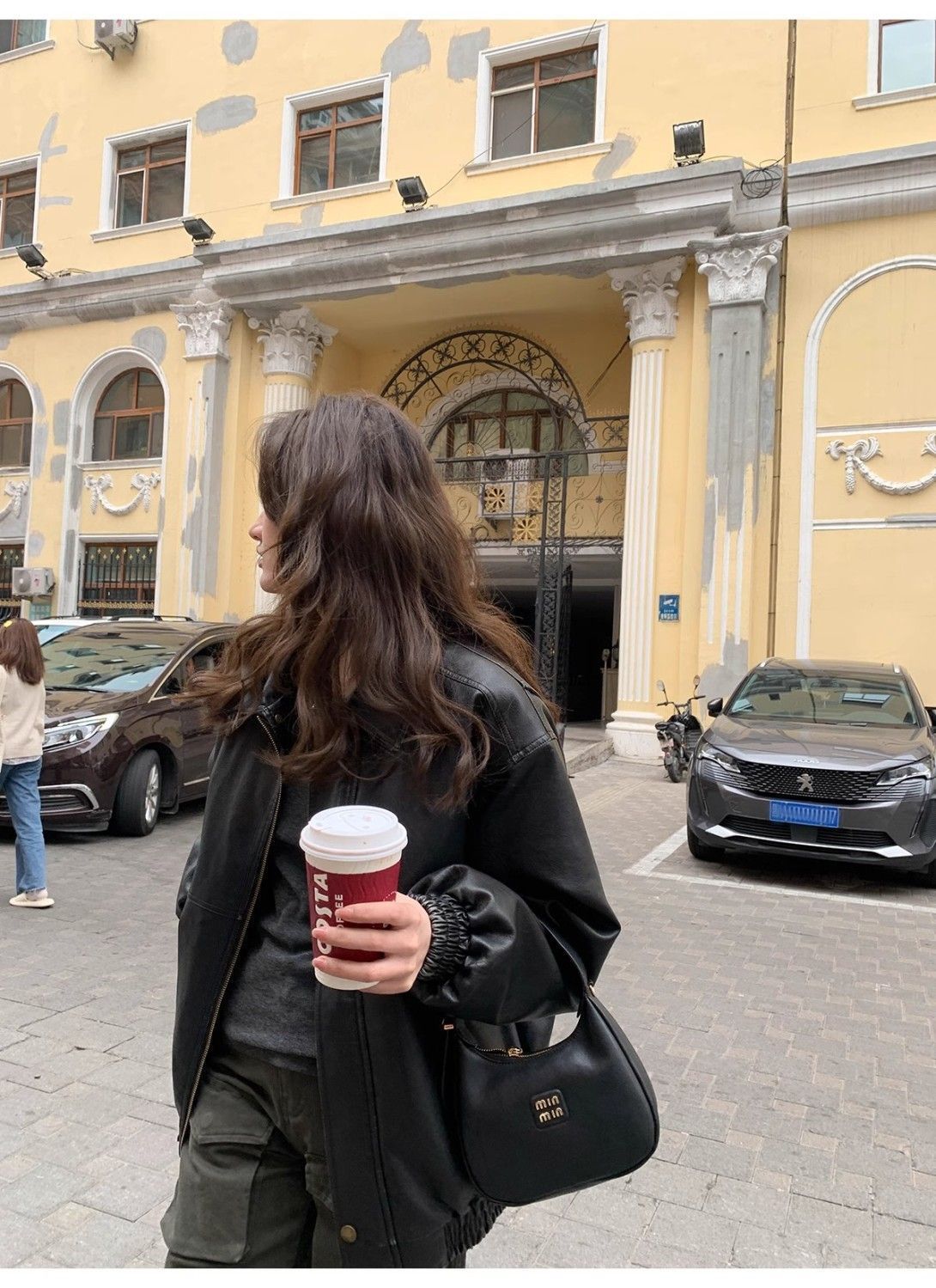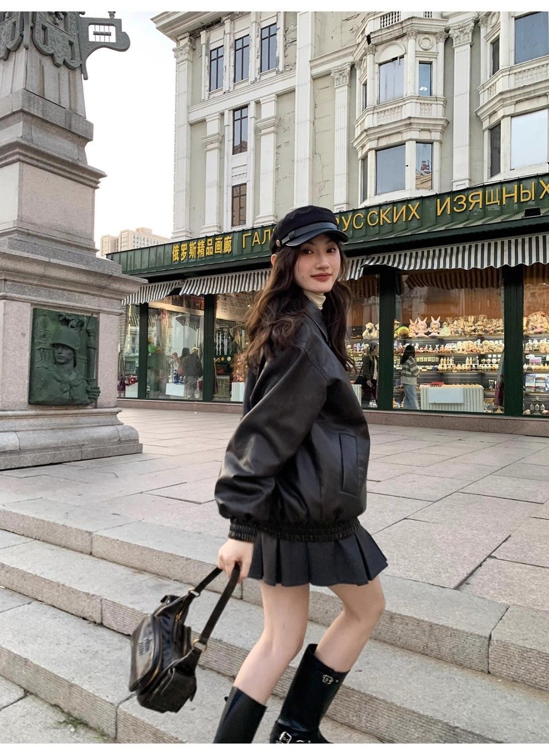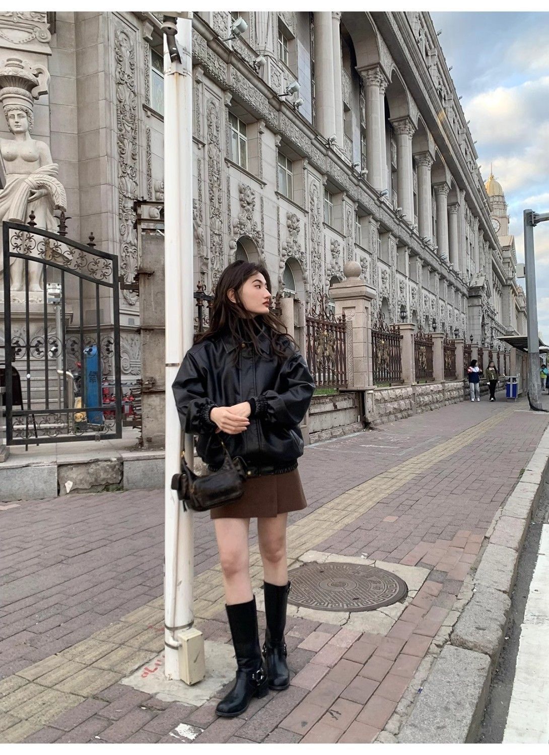 여성을위한 미국 갈색 복고풍 오래된 느슨한 가죽 자켓 봄, 가을 2025 새로운 느슨한 한국 스타일 따뜻한 자켓 유행스토어 가기