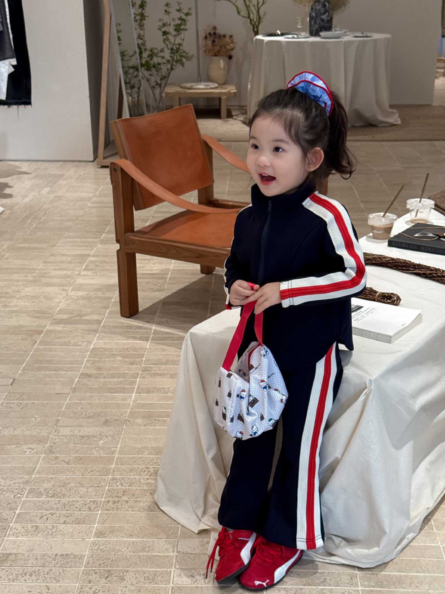 2025 새로운 가을 아동복 한국 스타일 아동복 소녀 스포츠 스타일 캐주얼 정장 재킷 + 플레어 바지스토어 가기