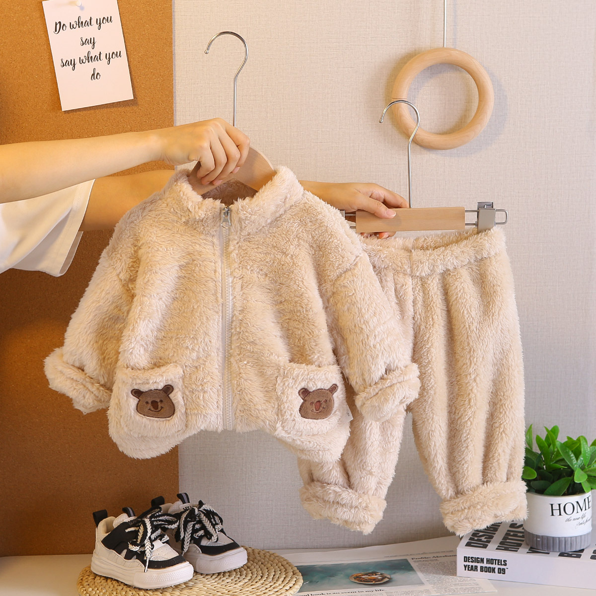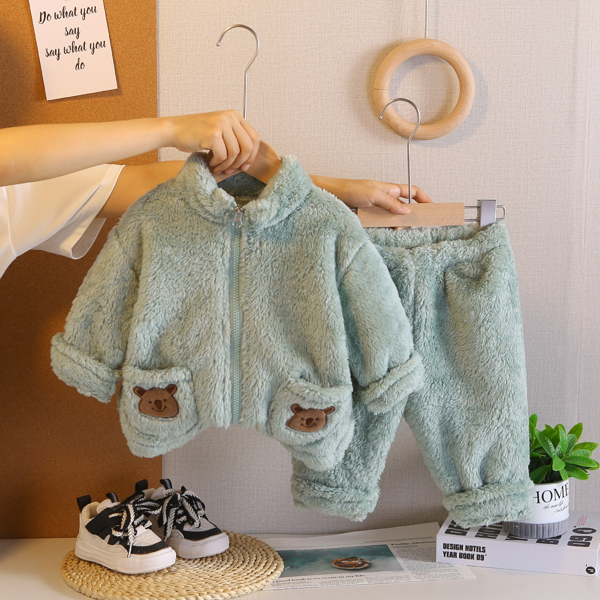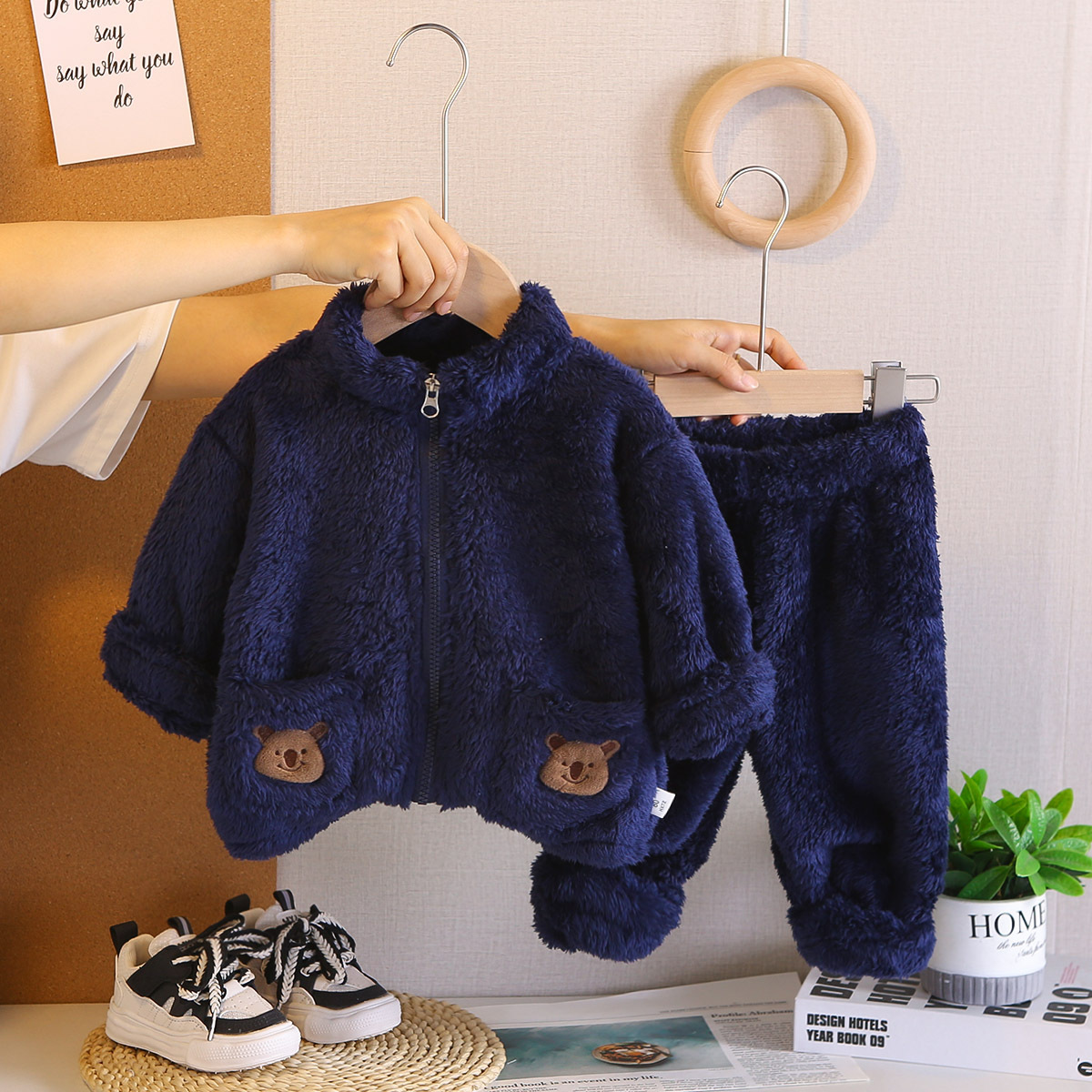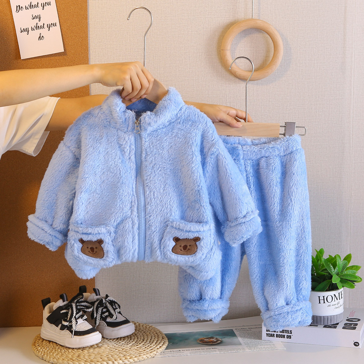 대외 무역 어린이 플러시 잠옷 두꺼운 아동 의류 귀여운 아기 따뜻한 옷 소년과 소녀 홈 세트 겨울 스타일스토어 가기