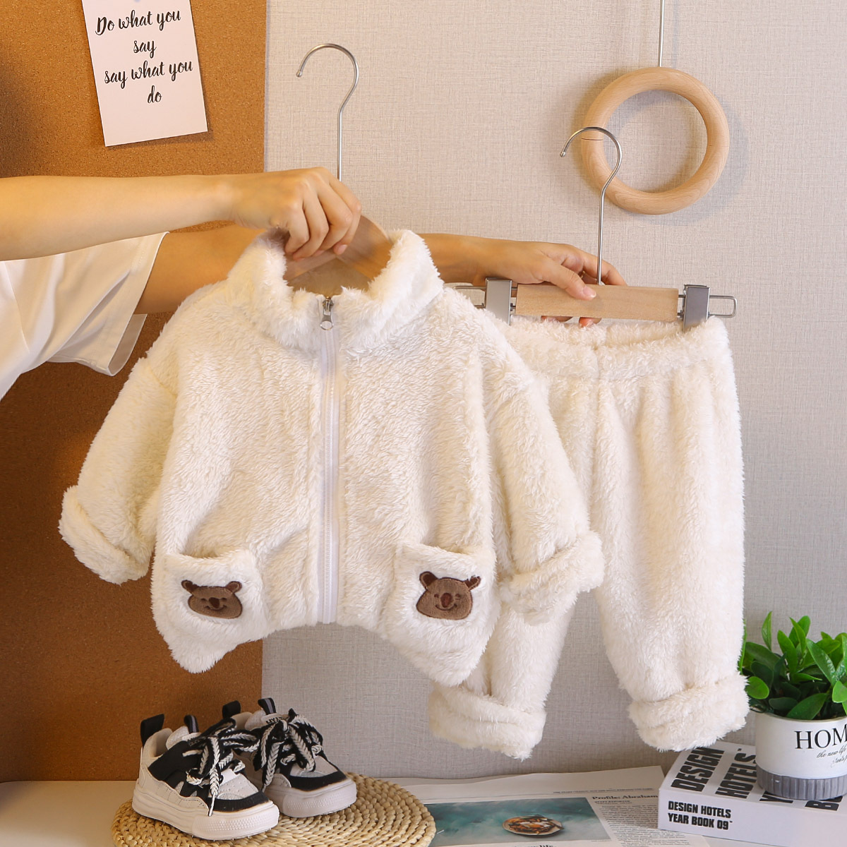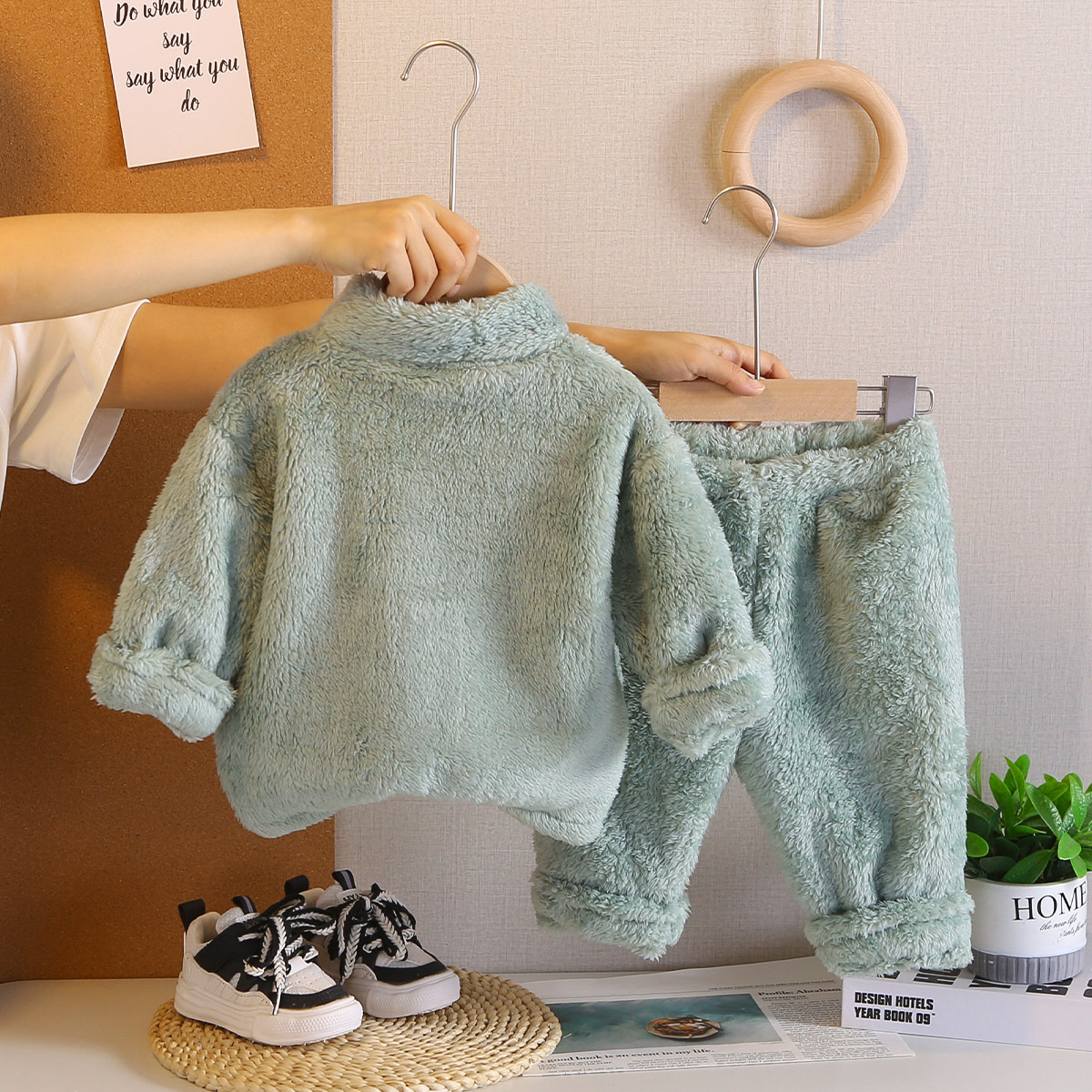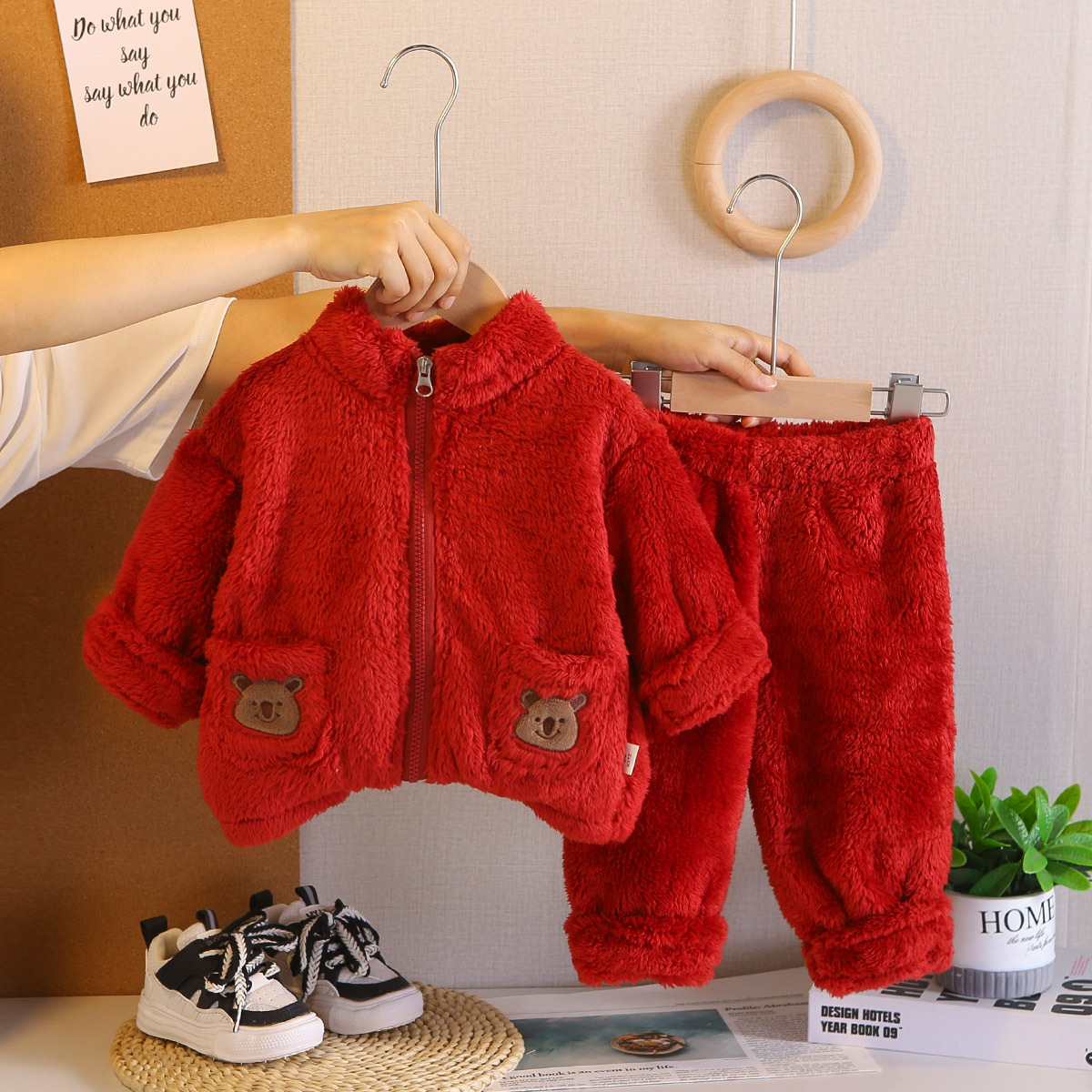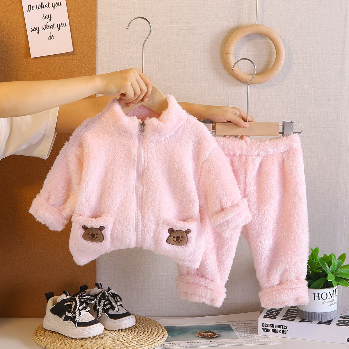 대외 무역 어린이 플러시 잠옷 두꺼운 아동 의류 귀여운 아기 따뜻한 옷 소년과 소녀 홈 세트 겨울 스타일스토어 가기