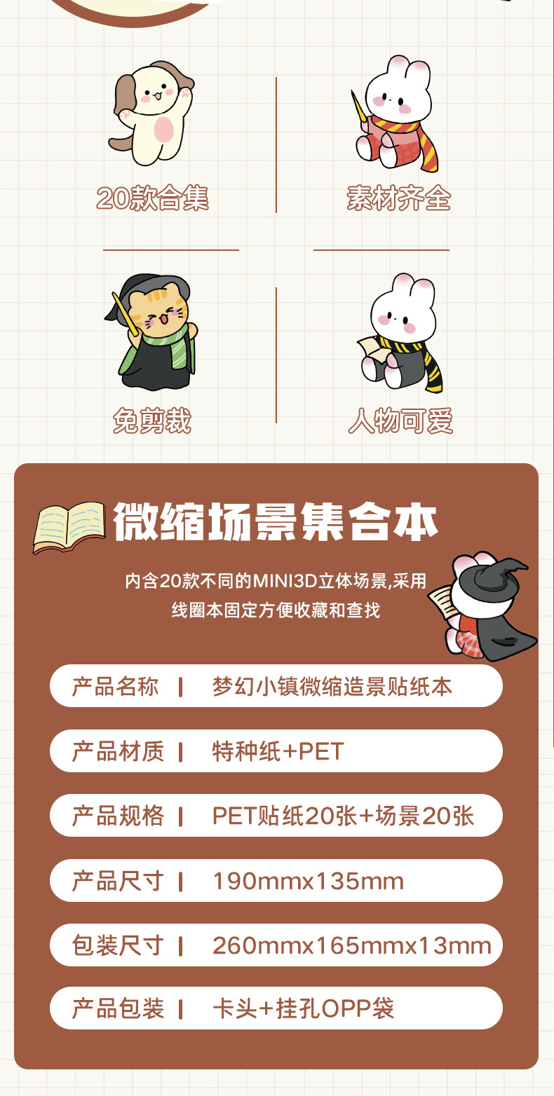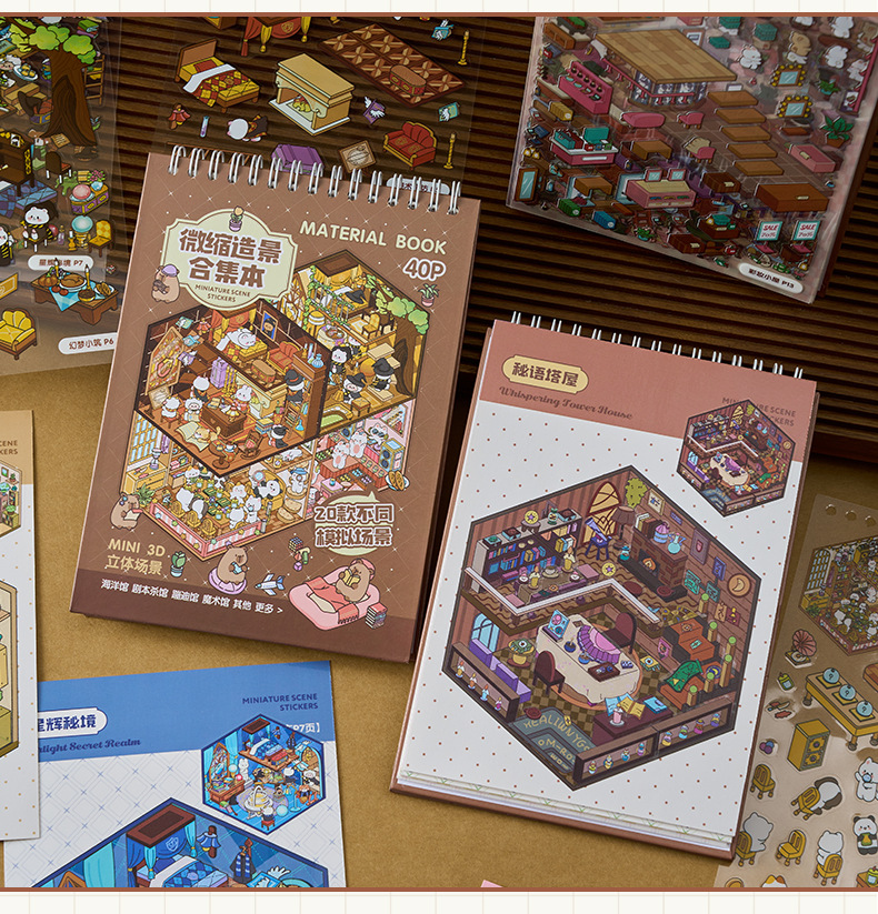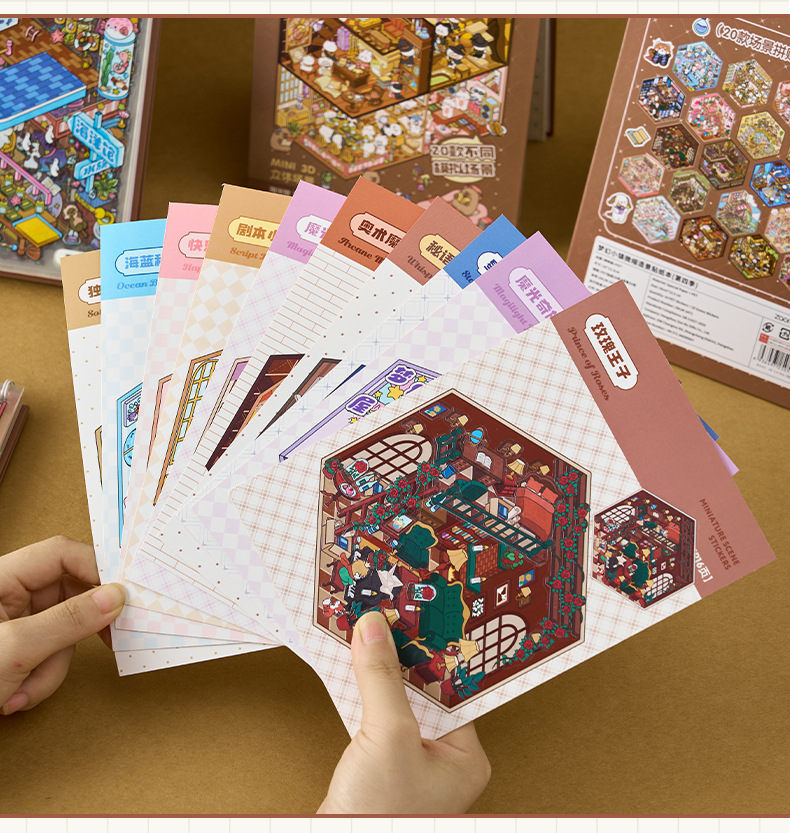 Zaomu Dream Town 4.0 조경 스티커 미니어처 장면 컬렉션 마법 테마 3D 입체 캐빈 스티커