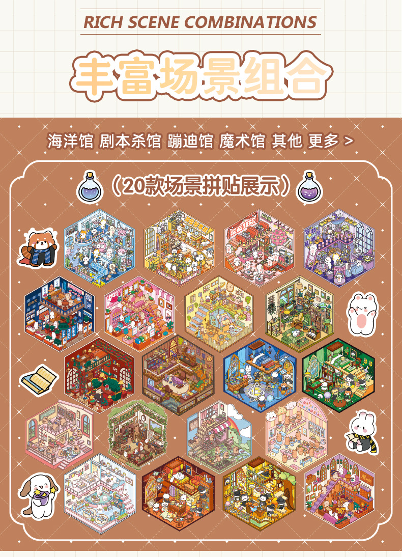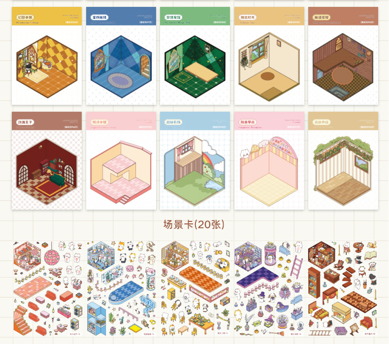 Zaomu Dream Town 4.0 조경 스티커 미니어처 장면 컬렉션 마법 테마 3D 입체 캐빈 스티커스토어 가기