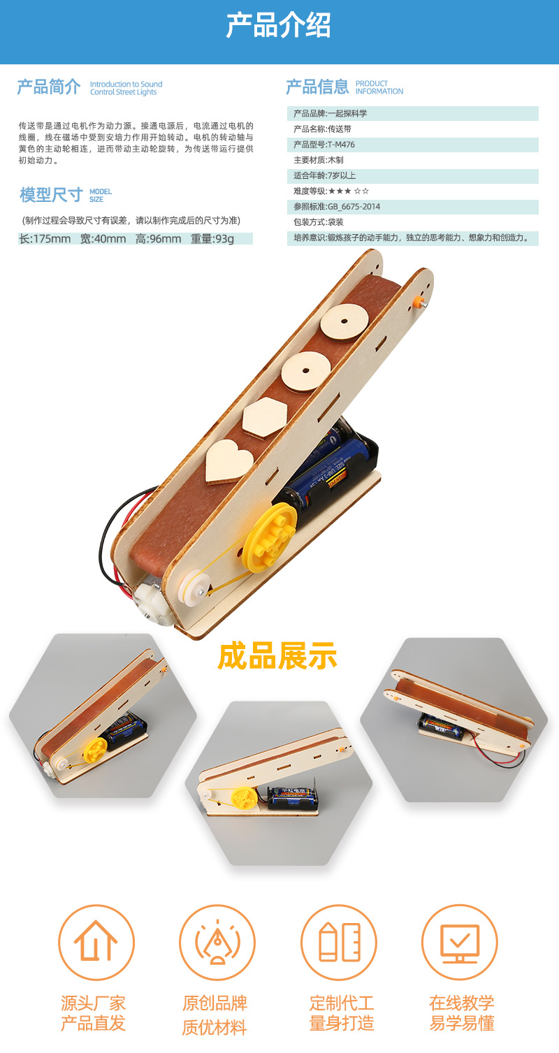 과학 기술 소규모 생산 전기 운반 벨트 조립 모델 어린이 작은 발명품 수제 diy 재료 운반 벨트 실험스토어 가기