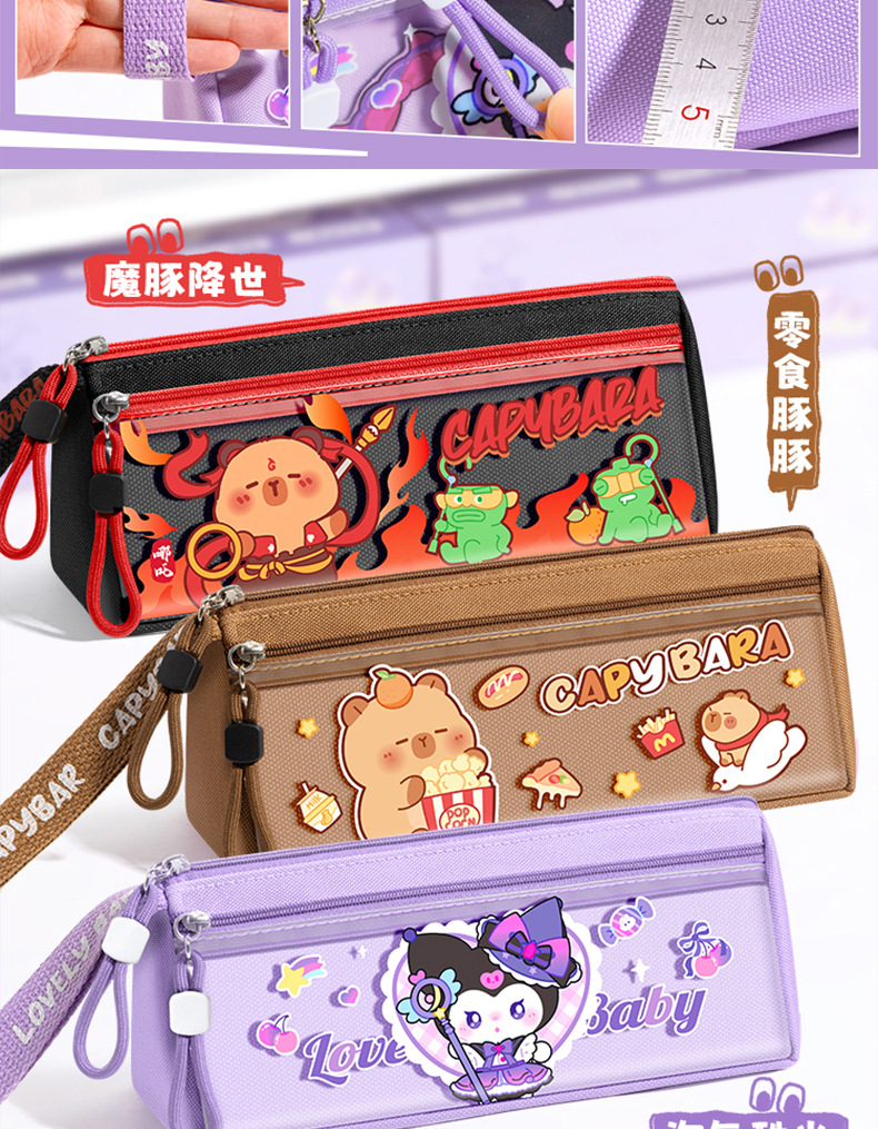 마법의 돌고래 카피바라 삼각형 만화 연필 가방 초등학생 연필 문구 상자 2025 새로운 대용량 내마모성