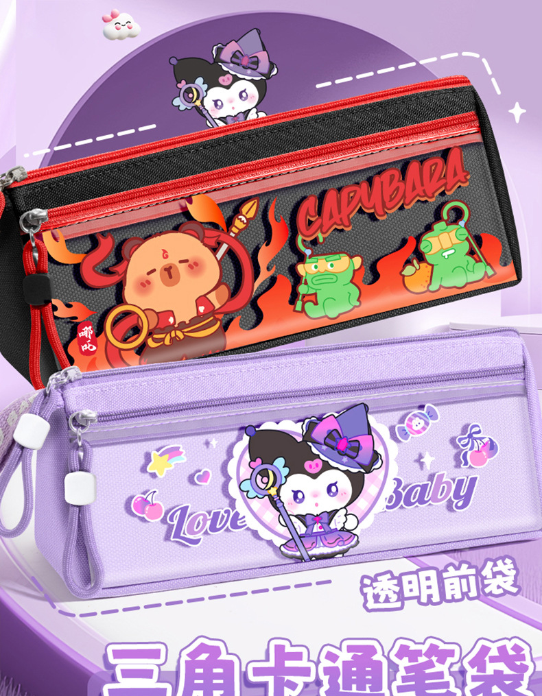 마법의 돌고래 카피바라 삼각형 만화 연필 가방 초등학생 연필 문구 상자 2025 새로운 대용량 내마모성스토어 가기