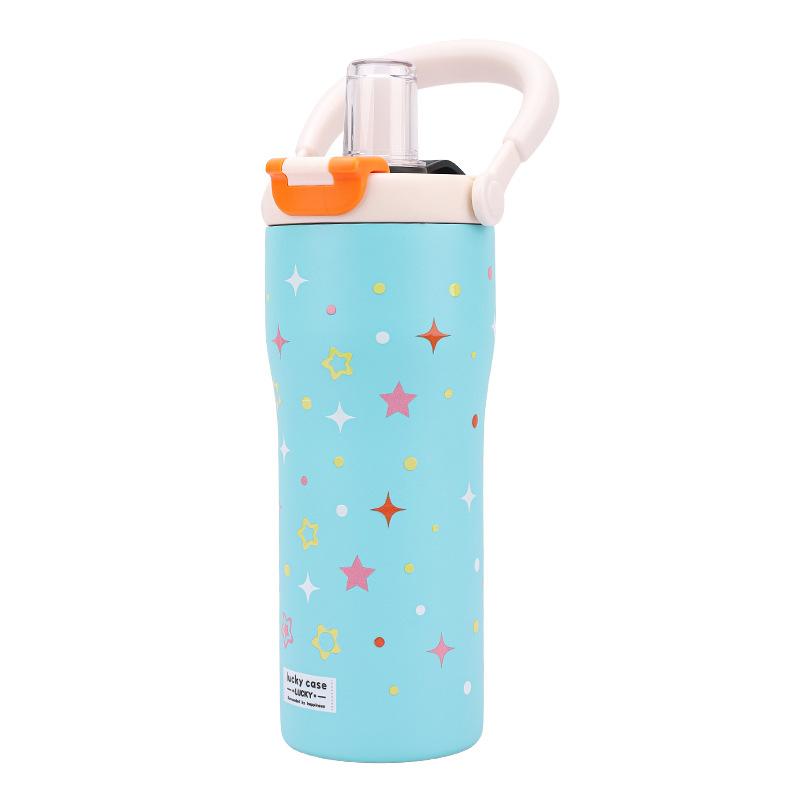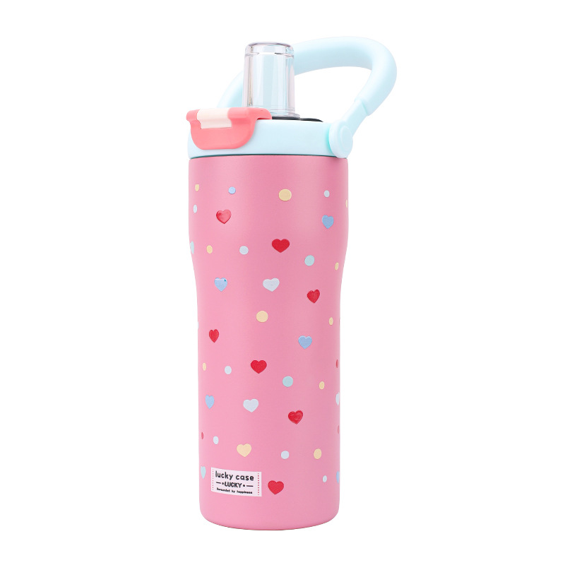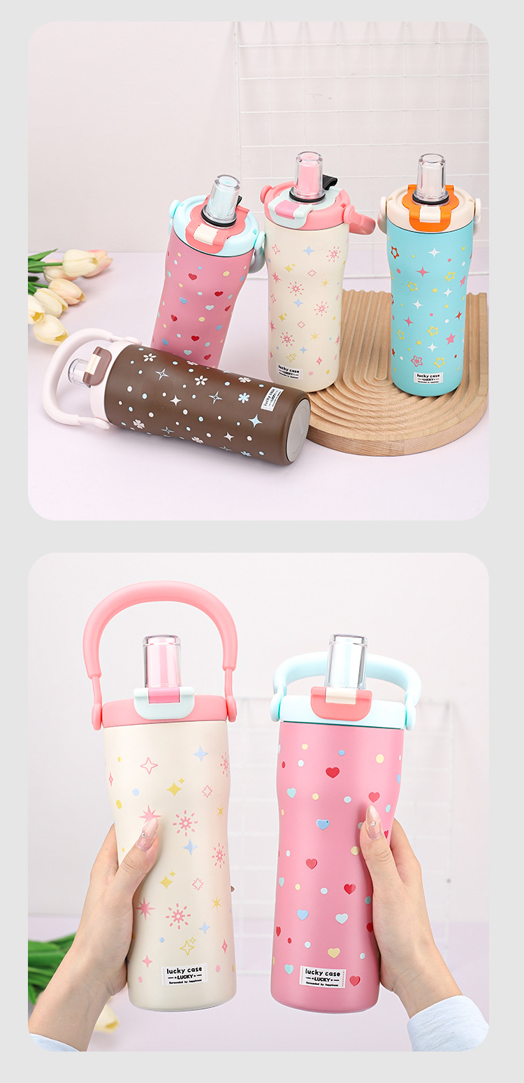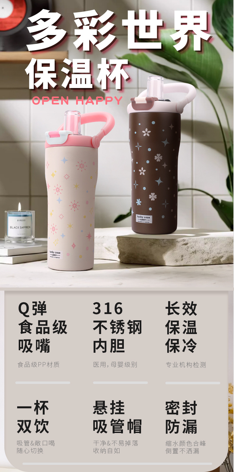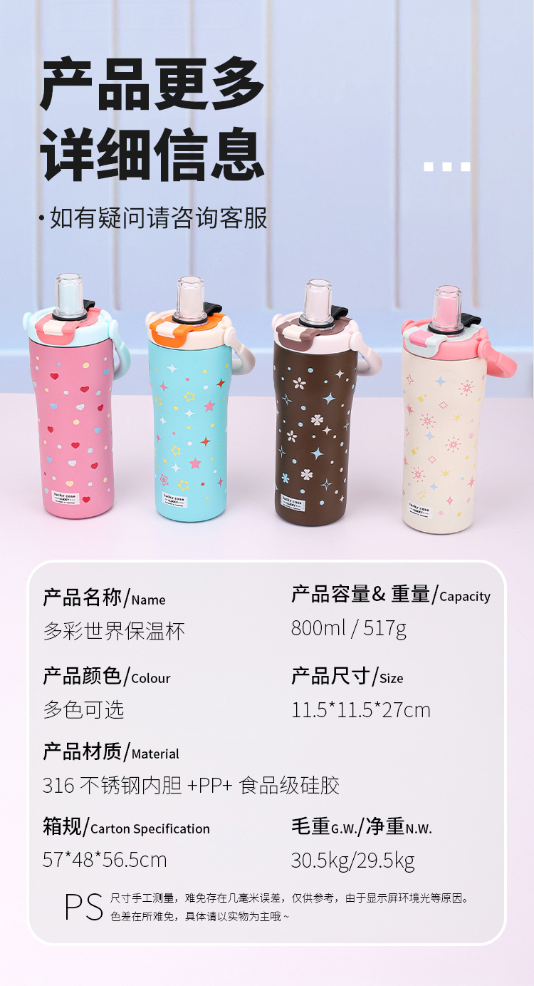 보온병 316 스테인리스 일본 및 한국 스타일 빨대 아이스컵 귀여운 학생용 다채로운 세계 대용량 물병