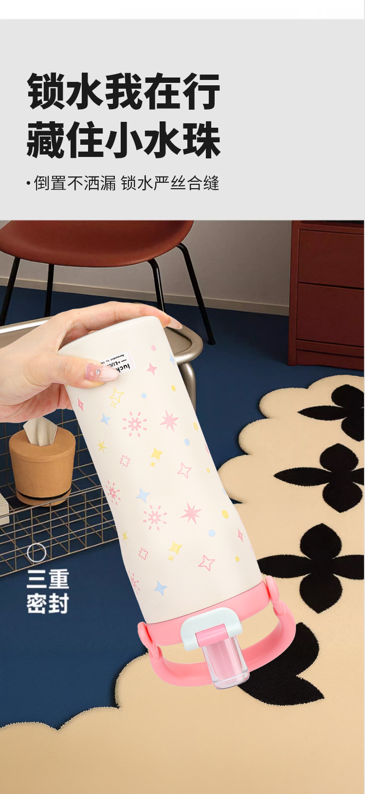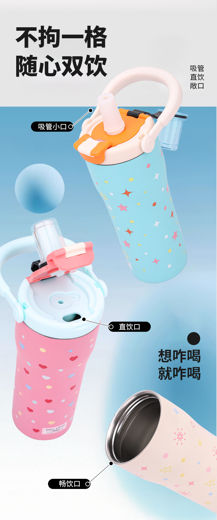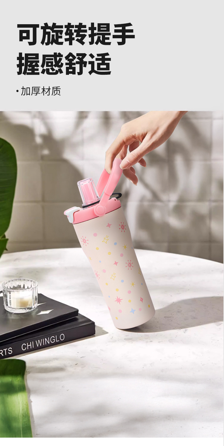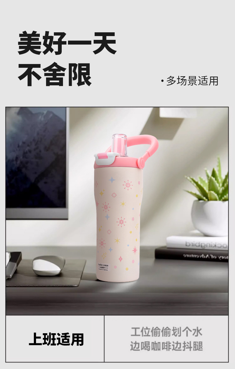 보온병 316 스테인리스 일본 및 한국 스타일 빨대 아이스컵 귀여운 학생용 다채로운 세계 대용량 물병