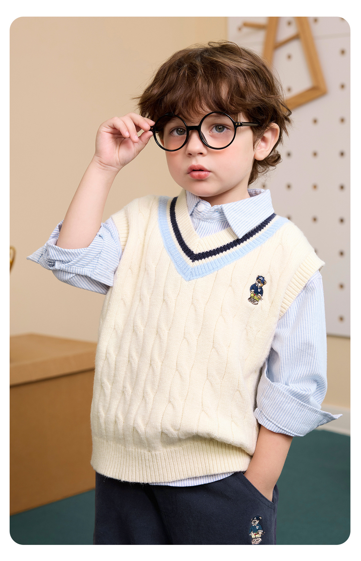 유럽풍 남아 아카데믹 스타일 조끼 봄옷 2026 신상 아동복 아기 스웨터 니트 조끼 봄가을 스타일스토어 가기