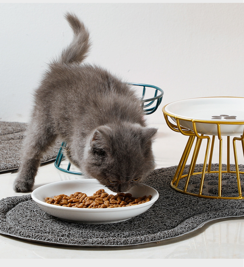 고양이 그릇 세라믹 그릇 북유럽 고급스러운 고양이 그릇 고양이 접시 철제 고양이 그릇 랙은 경추를 보호하고 뒤집히는 것을 방지합니다.스토어 가기