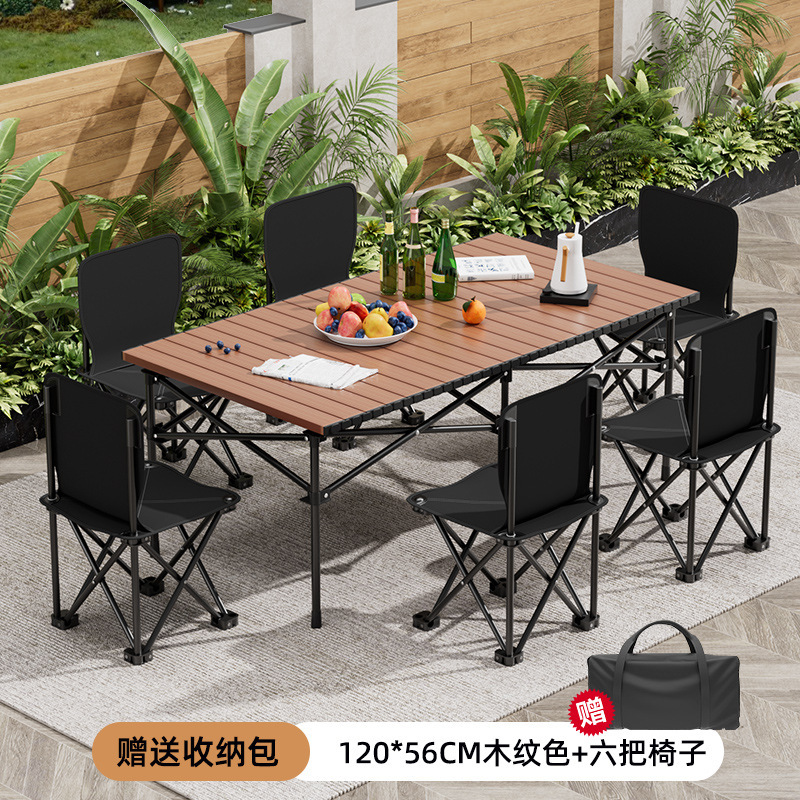 • 나뭇결 색상 120*55cm+검은색 의자 6개 [두꺼운 탄소강] 대형 수납 가방 포함♢★