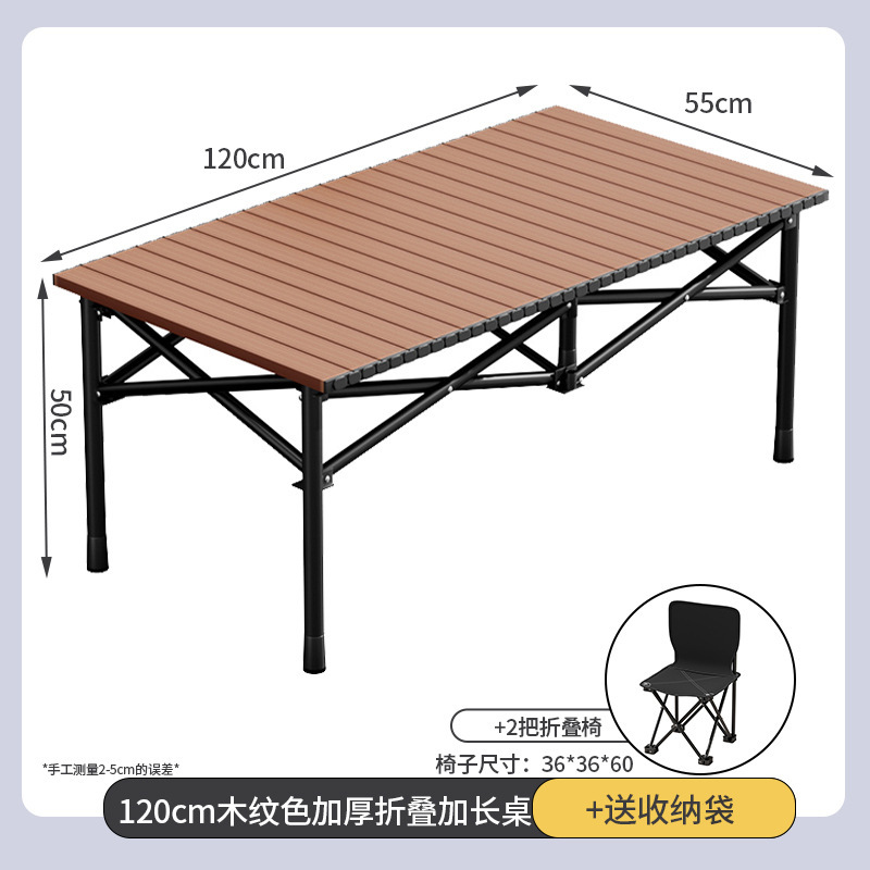• 나뭇결 색상 120*55cm+검은색 의자 2개 [두꺼운 탄소강] 대형 수납 가방 포함♢★