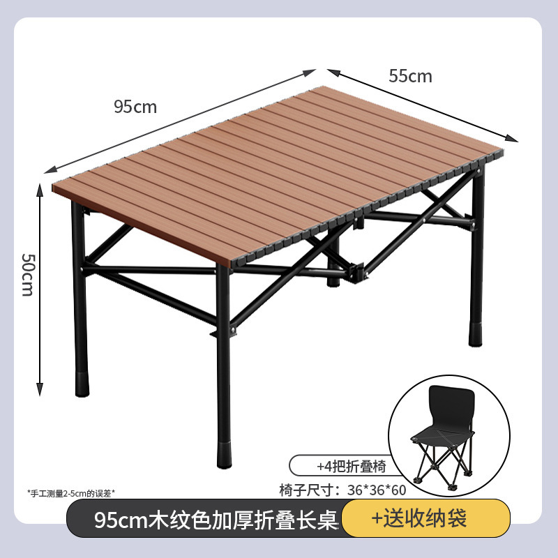 • 나뭇결 색상 95*55cm+검은색 의자 4개 [두꺼운 탄소강] 대형 수납 가방 포함♢★