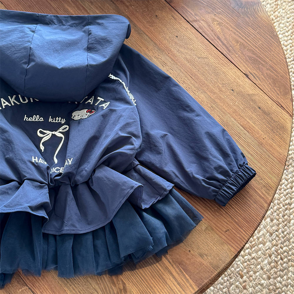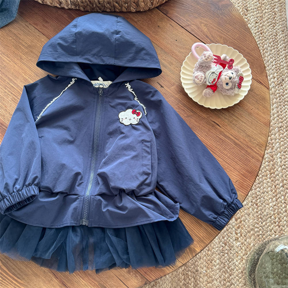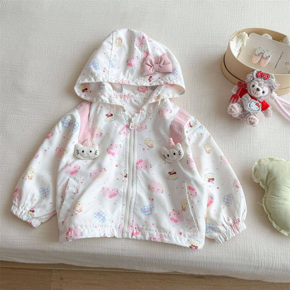 샤오샤오닝니 코트 한국 스타일 귀여운 만화 레이스 후드 가디건 아동용 다용도 의류 여아 봄 가을 코트