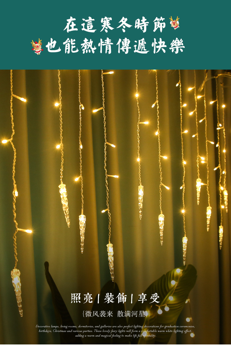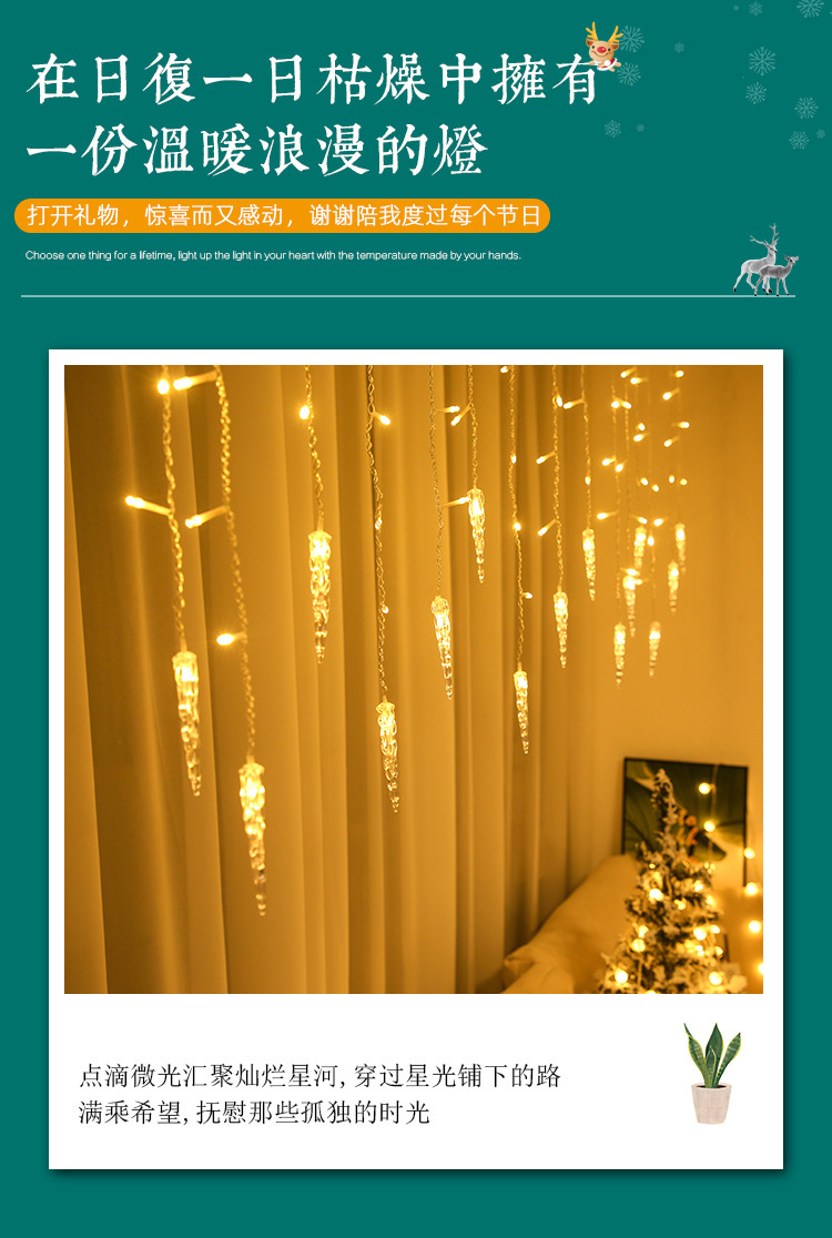 产品名称:窗帘雪花片灯串/窗帘圣诞树灯串/窗帘冰柱灯串