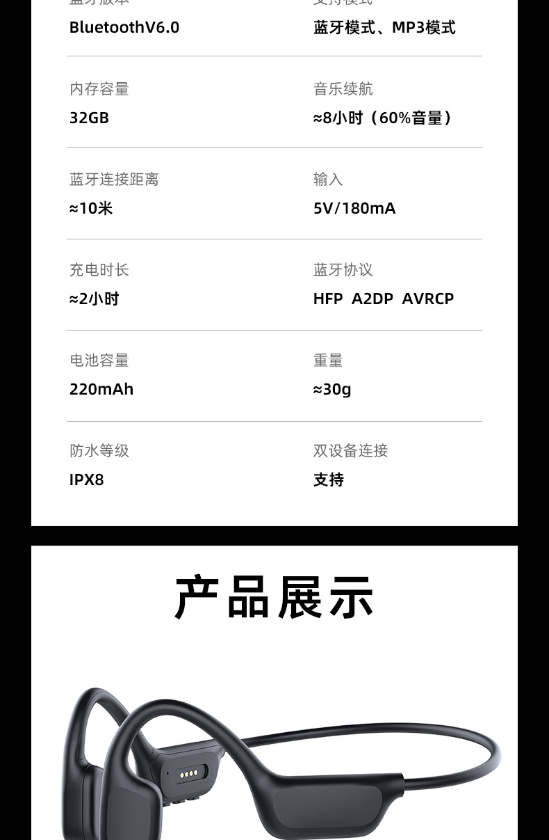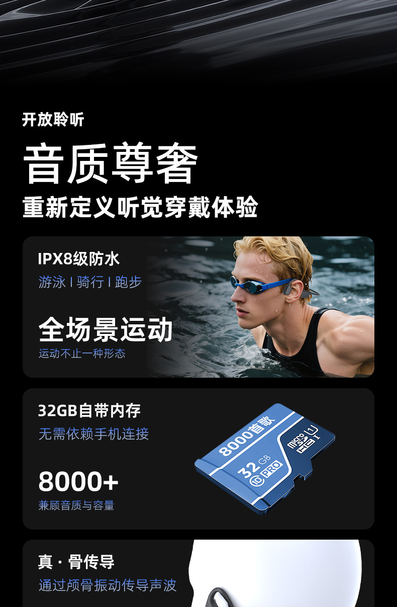 32g 메모리가 장착된 x7max 골전도 헤드폰 긴 배터리 수명 음악 듣기 스포츠 헤드폰 오픈형 블루투스 헤드셋스토어 가기
