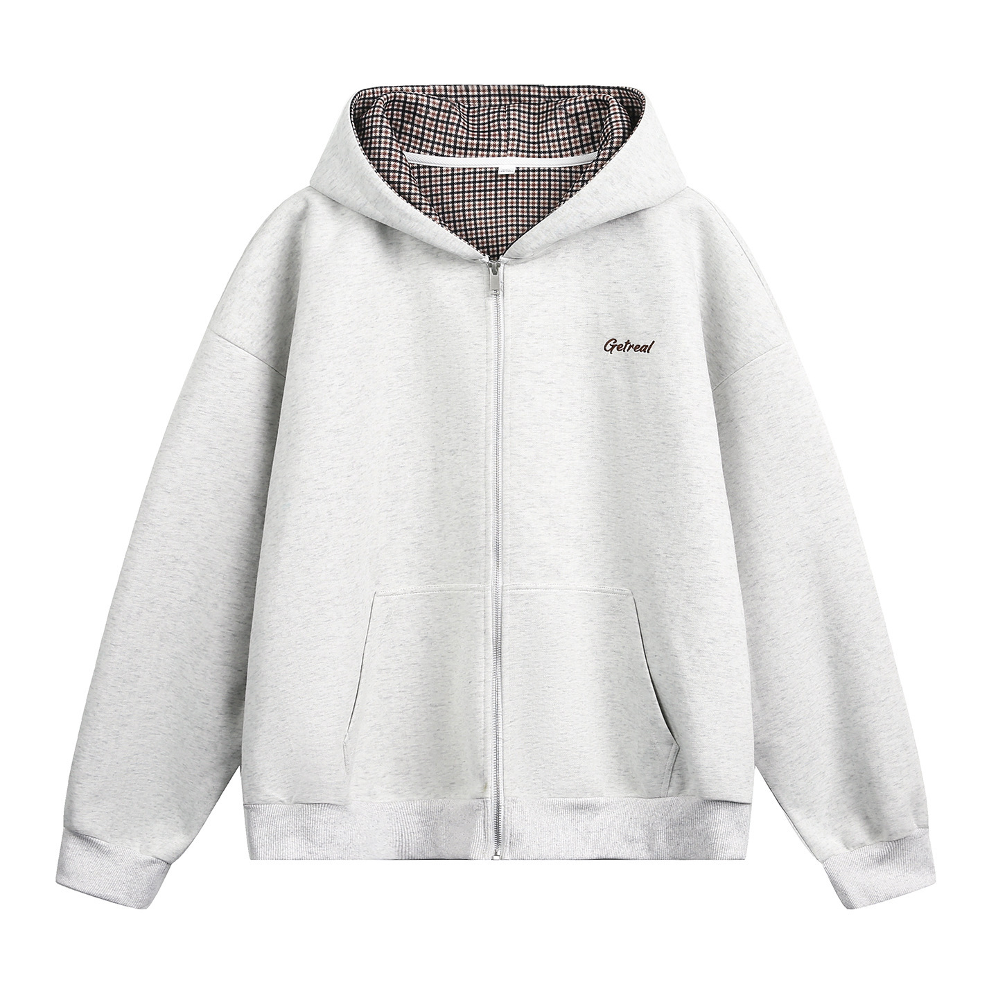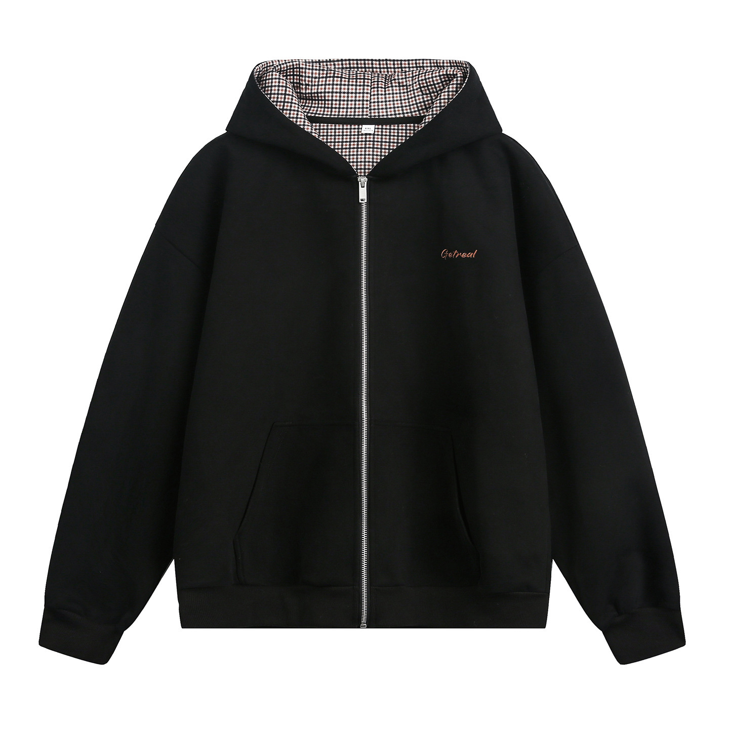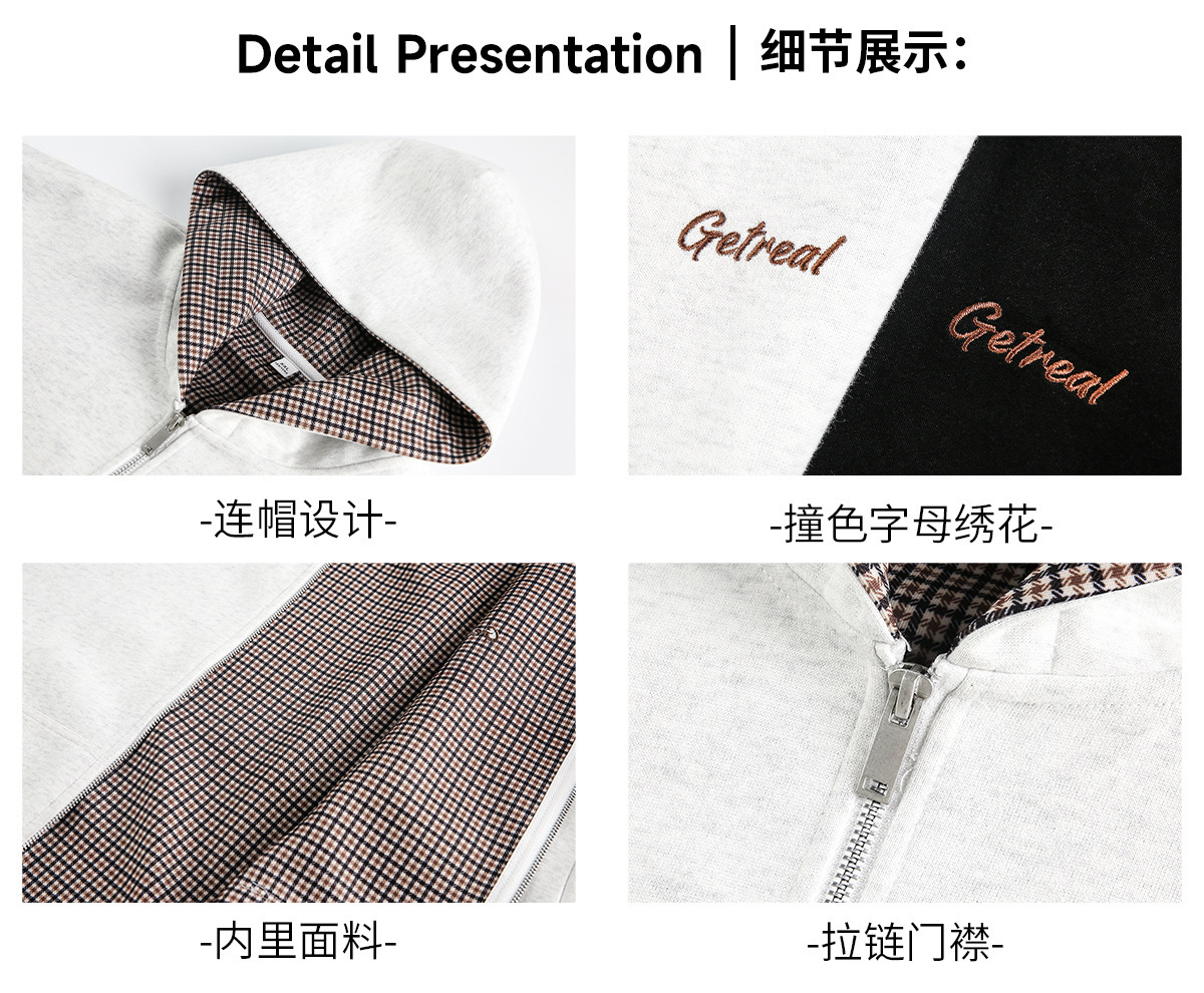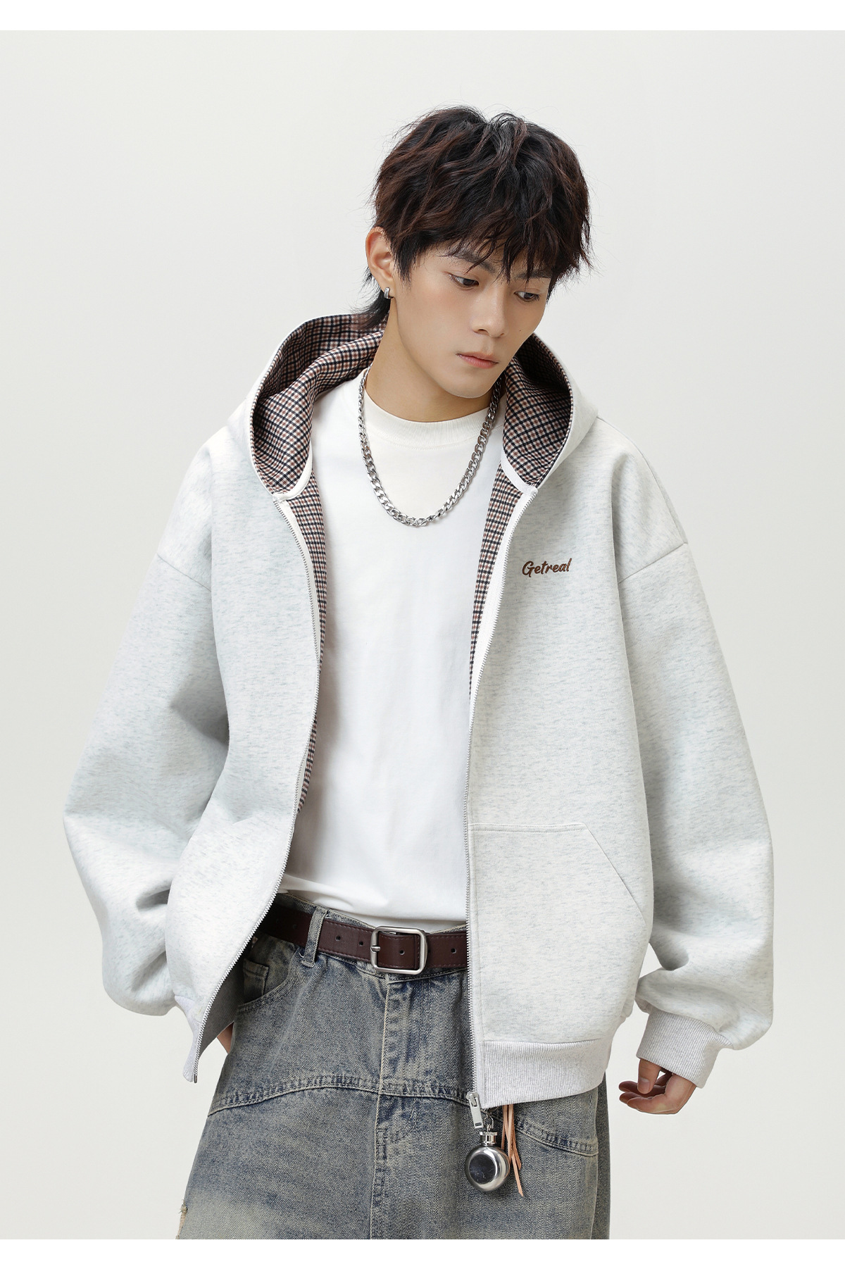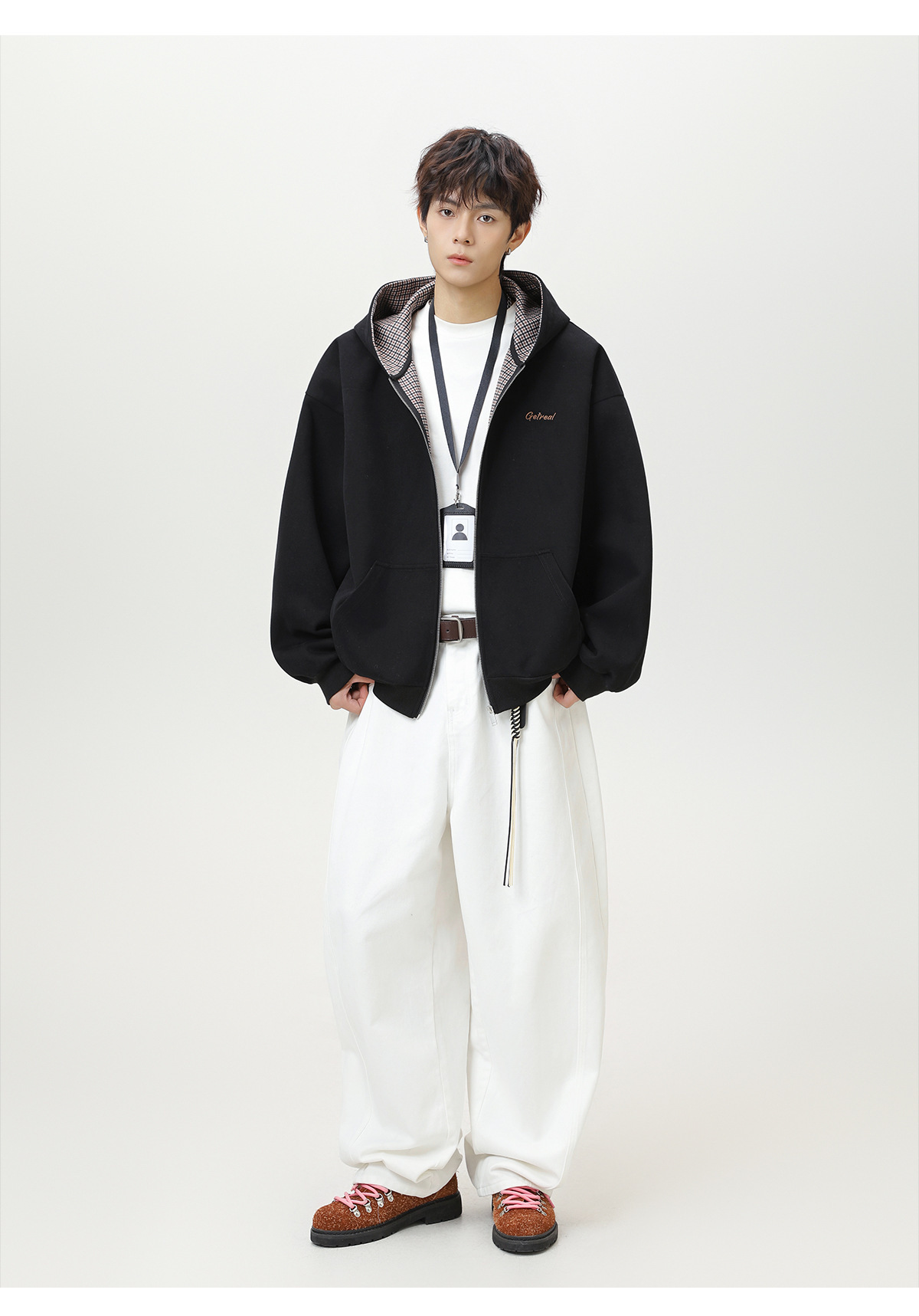 가을 남성용 하운드투스 콘트라스트 컬러 안감 후드 스웨트셔츠 헤비 레트로 쇼트 와이드 트렌디 브랜드 지퍼 카디건 재킷스토어 가기