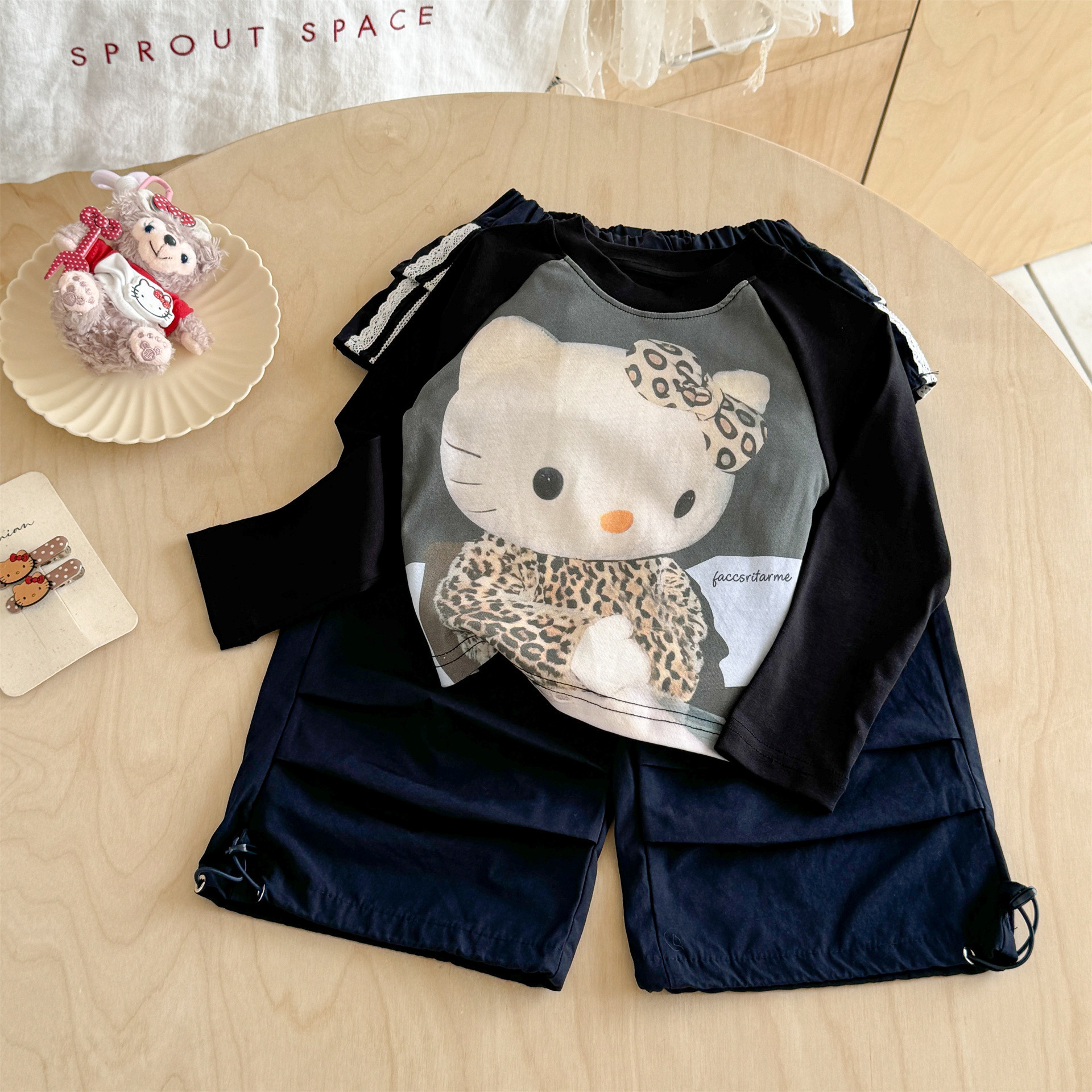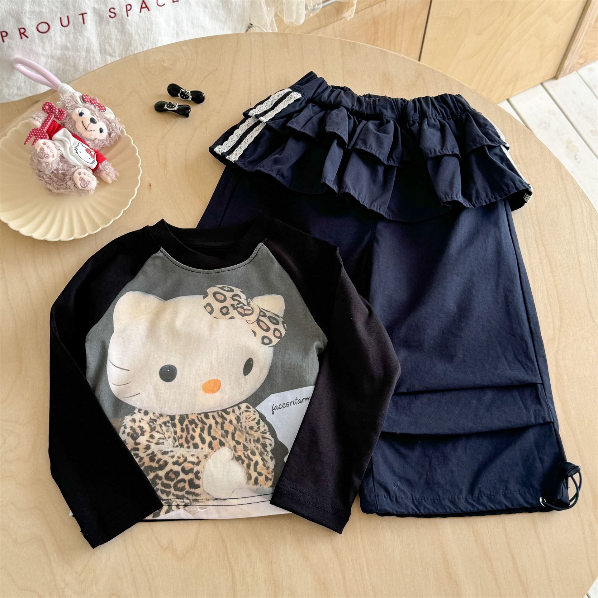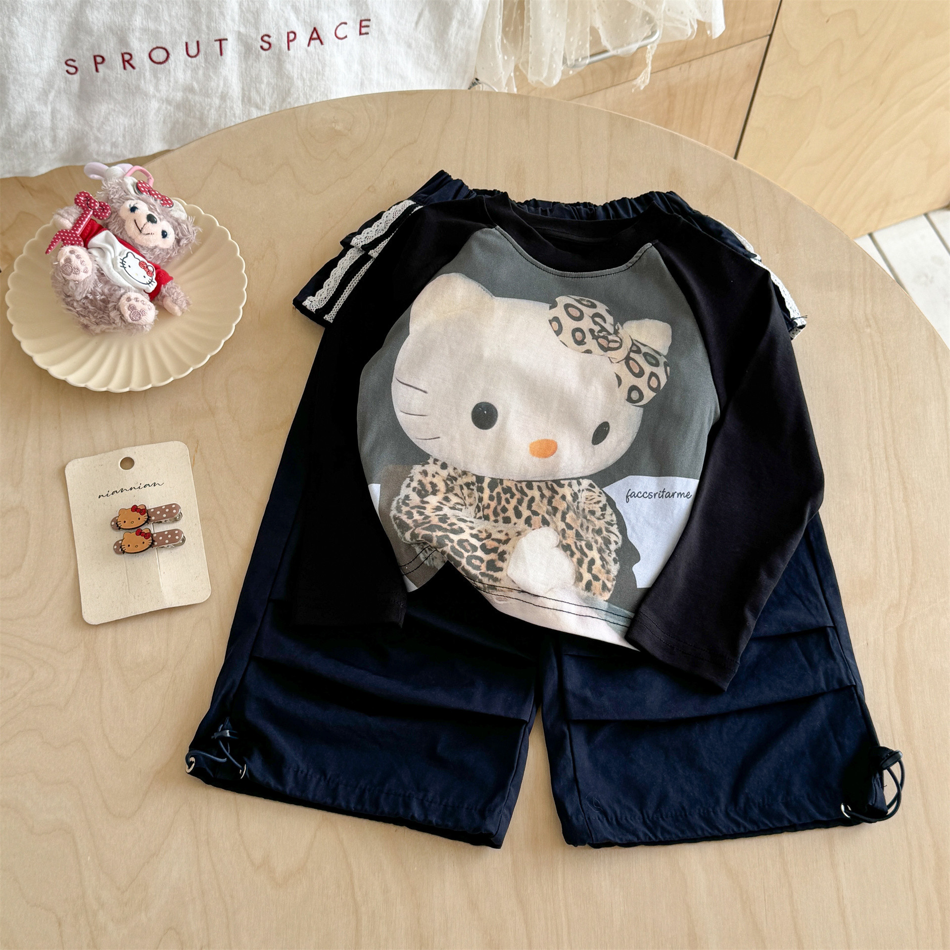 [핑크하우스] 여아 정장 2025 신상 면 긴팔 티셔츠 바지 투피스 세트 서양식 캐주얼 아동복스토어 가기