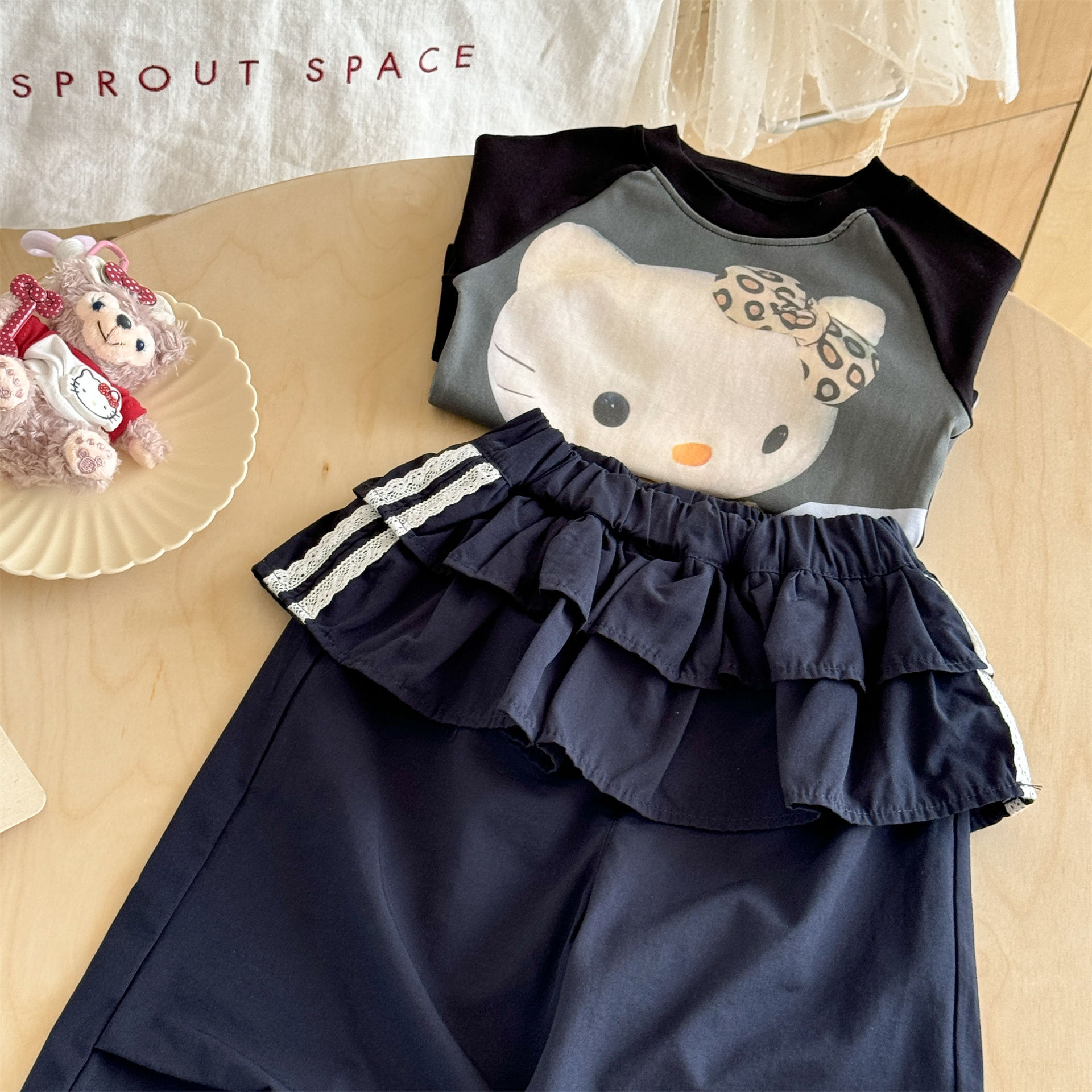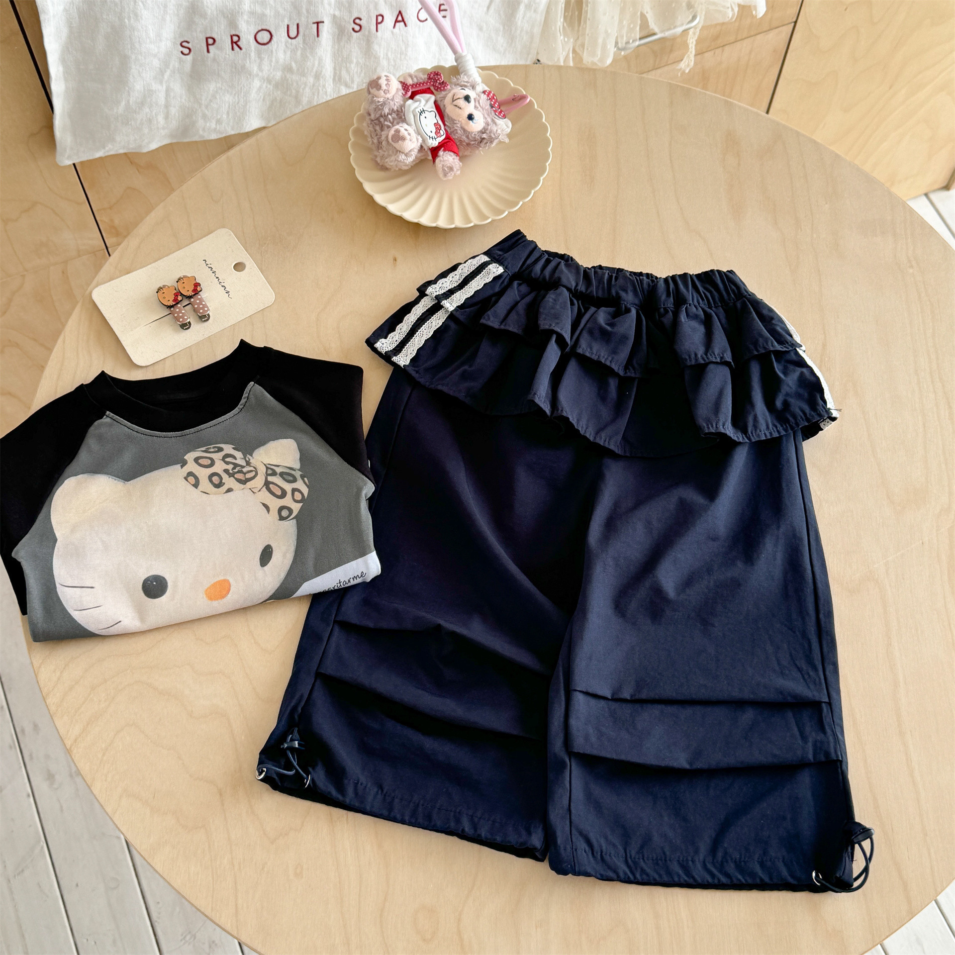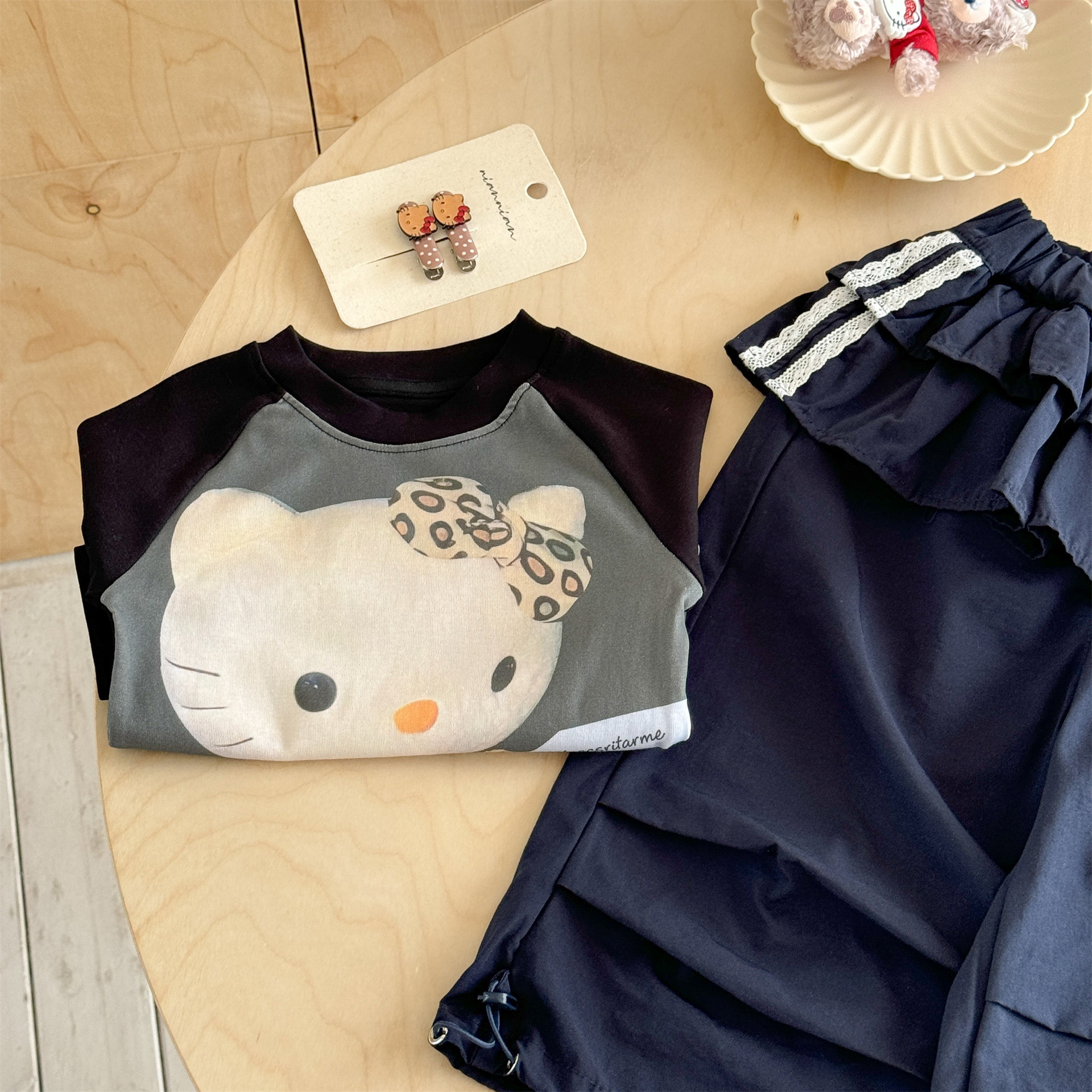 [핑크하우스] 여아 정장 2025 신상 면 긴팔 티셔츠 바지 투피스 세트 서양식 캐주얼 아동복스토어 가기