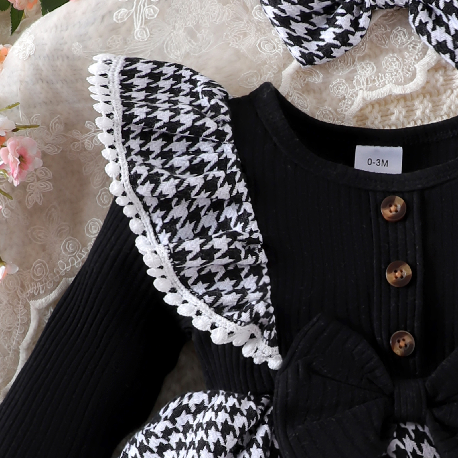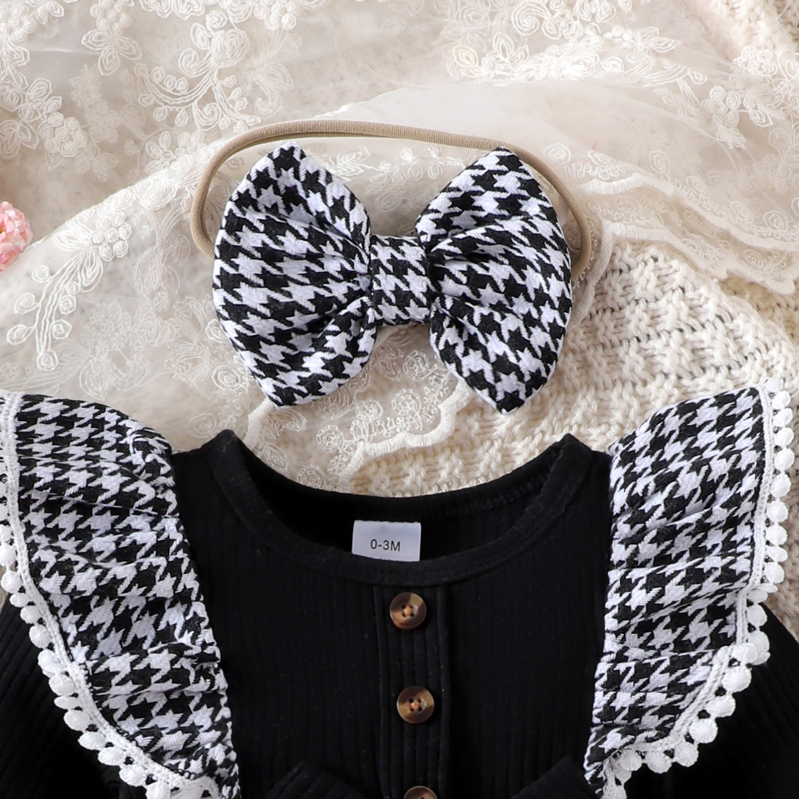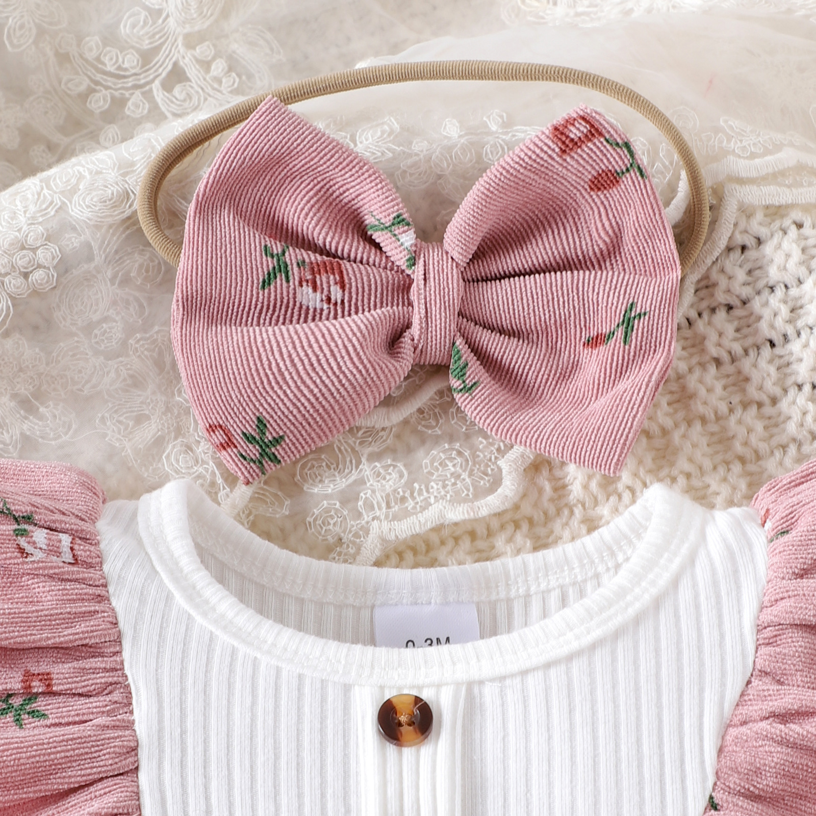 2025 아마존 크로스보더 유럽 및 미국 영유아 플라잉 슬리브 핏 스트립 보우 백 크롤링 슈트 헤어밴드 투피스 세트