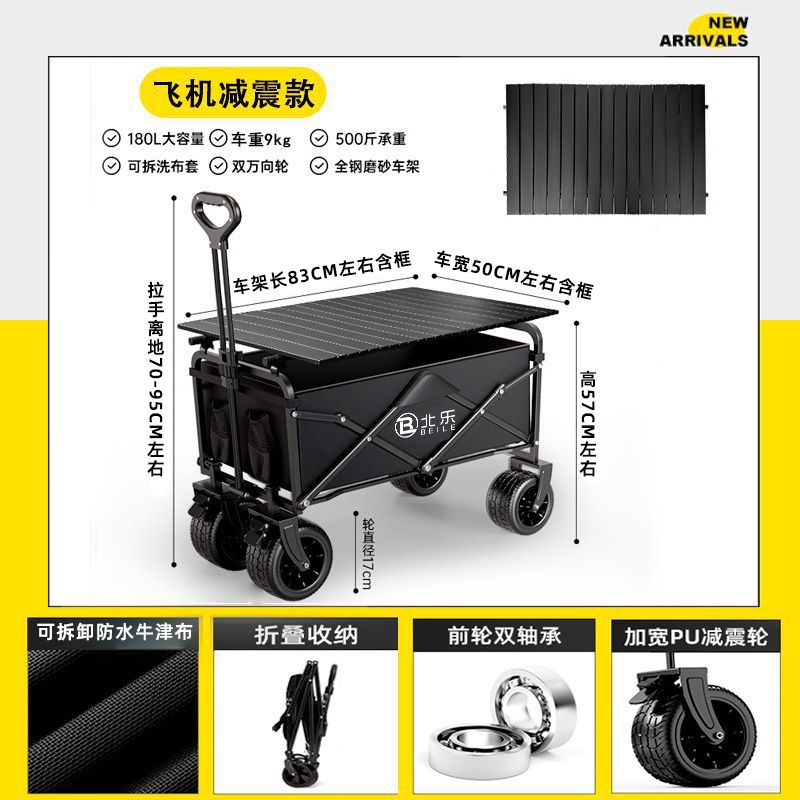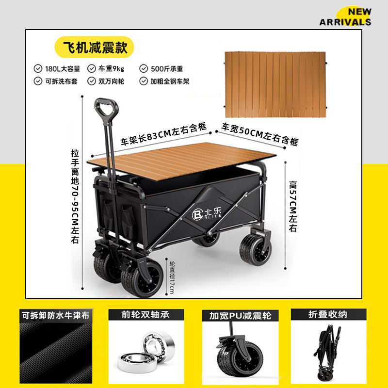 • 수출 품질 [두꺼운 철골 I 두꺼운 원단] - 테이블 패키지 [블랙] 8inch 오프로드 휠/더블 브레이크 + 블랙 테이블