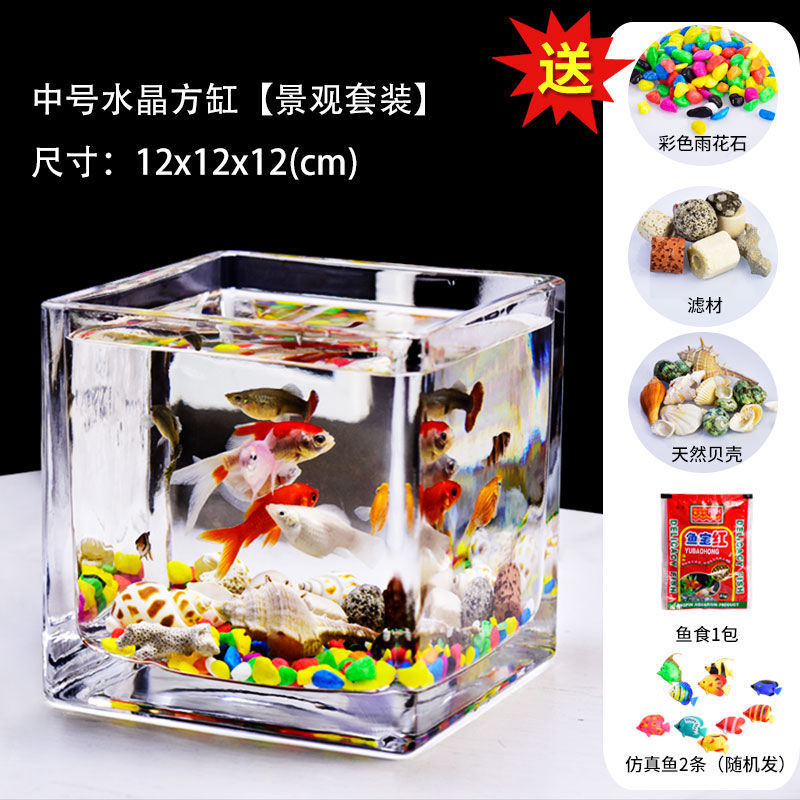 유리 수조 사각형 작은 조경 창조적 인 간단한 수경 금붕어 탱크 홈 데스크 버킷 소형스토어 가기