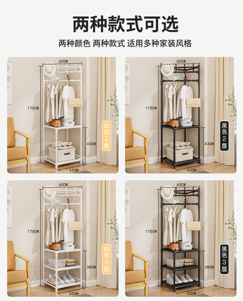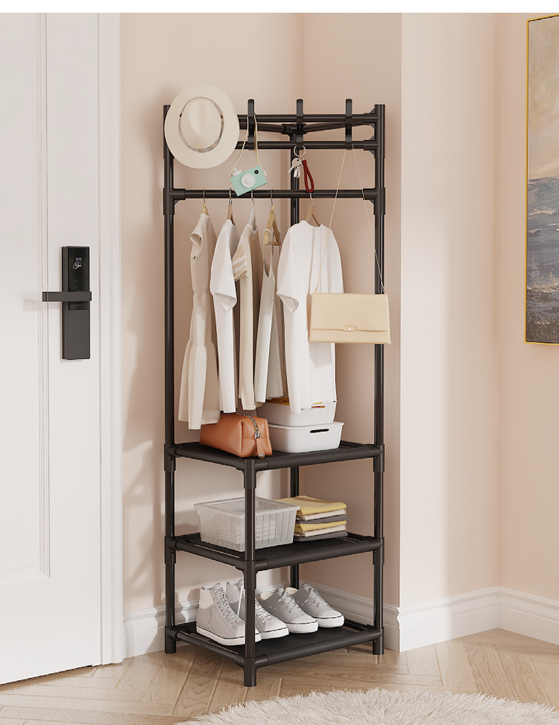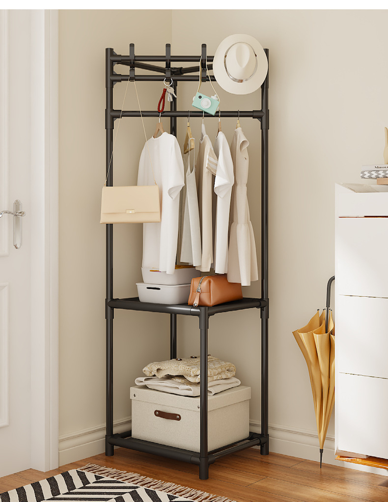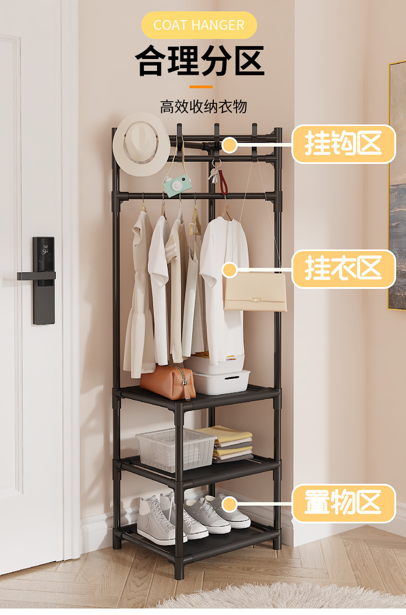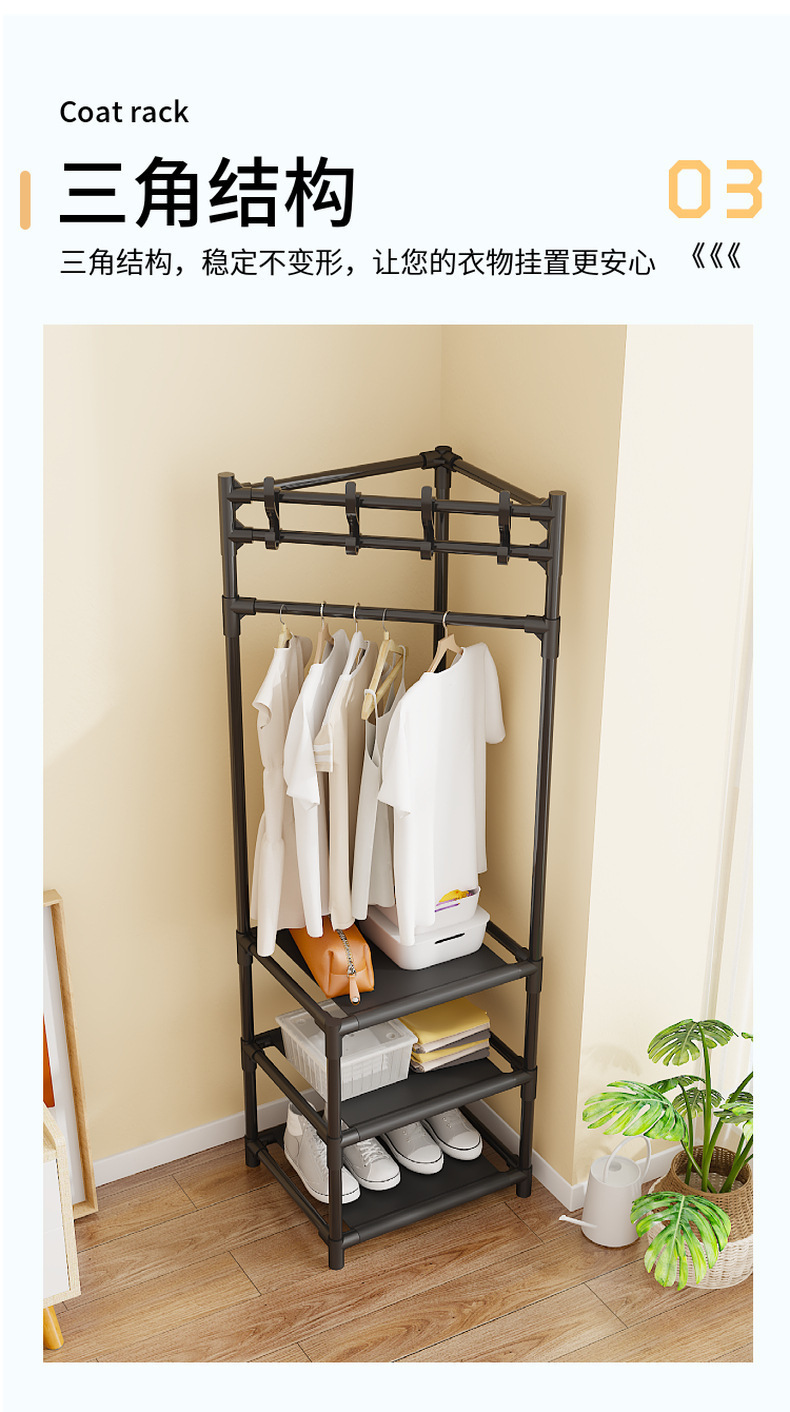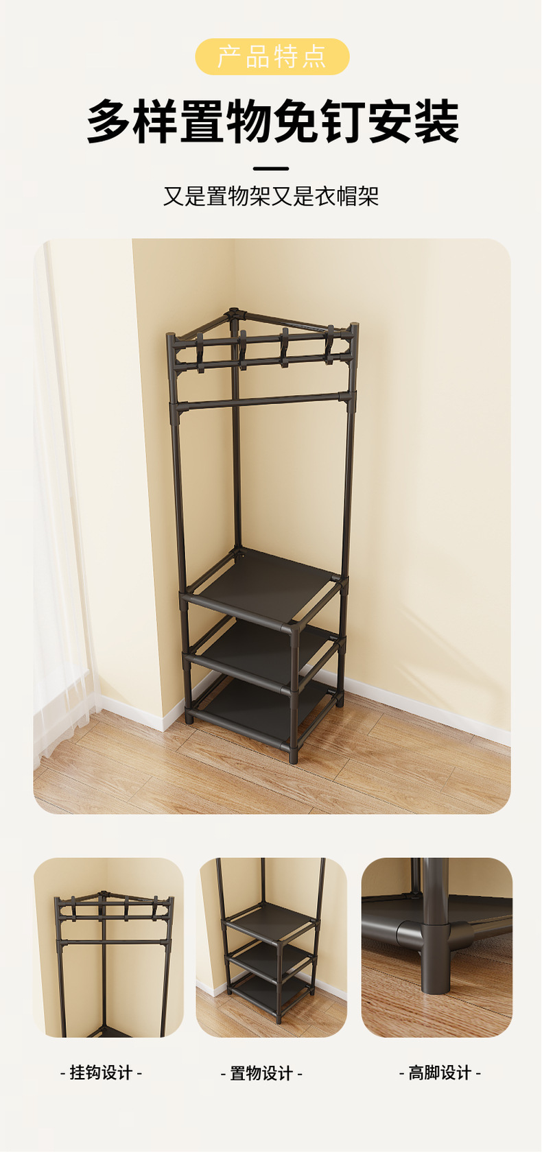 새로운 간단한 다기능 코너 코트 랙, 벽 코너 옷 걸이 기계, 바닥 스탠딩 신발 및 모자 랙, 침실 보관 및 보관 옷 걸이