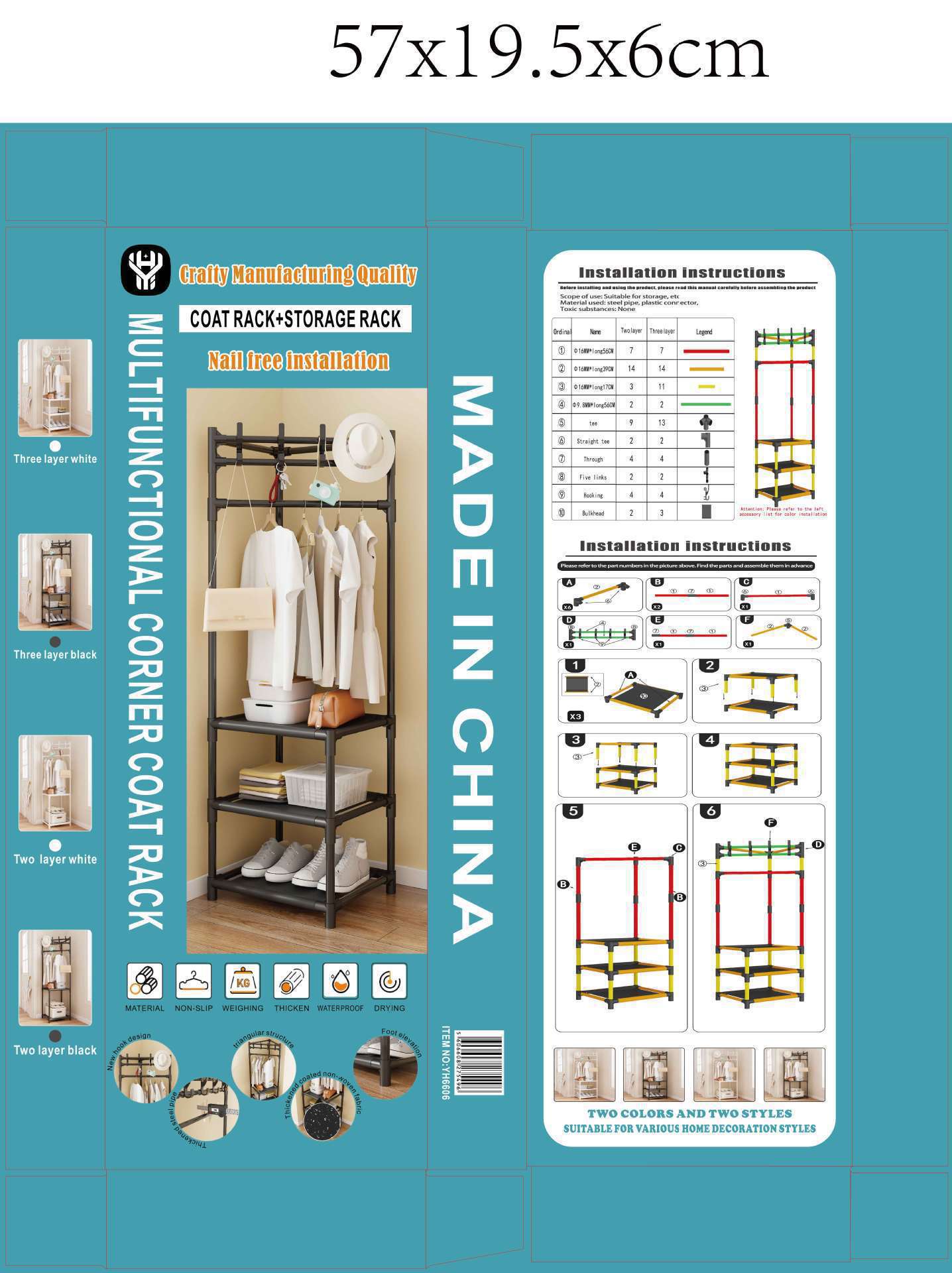 새로운 간단한 다기능 코너 코트 랙, 벽 코너 옷 걸이 기계, 바닥 스탠딩 신발 및 모자 랙, 침실 보관 및 보관 옷 걸이스토어 가기