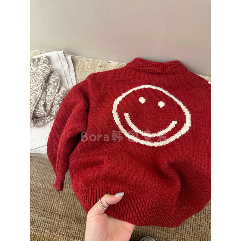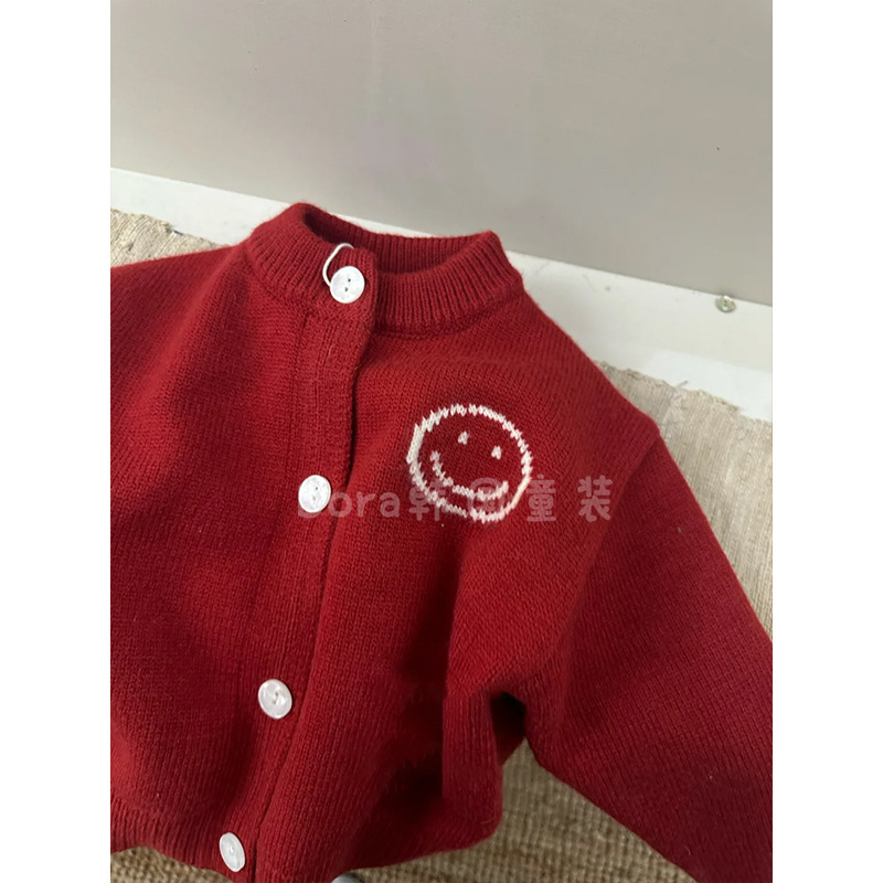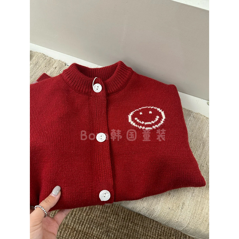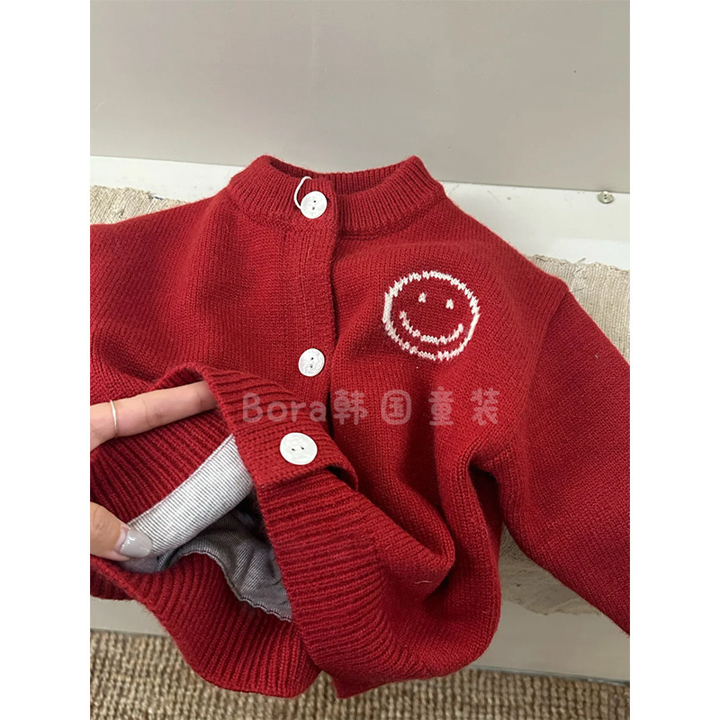 소년 스웨터 어린이 겨울 의류 2024 새로운 유행 빨간색 스웨터 아기 소녀 패션 느슨한 따뜻한 카디건스토어 가기