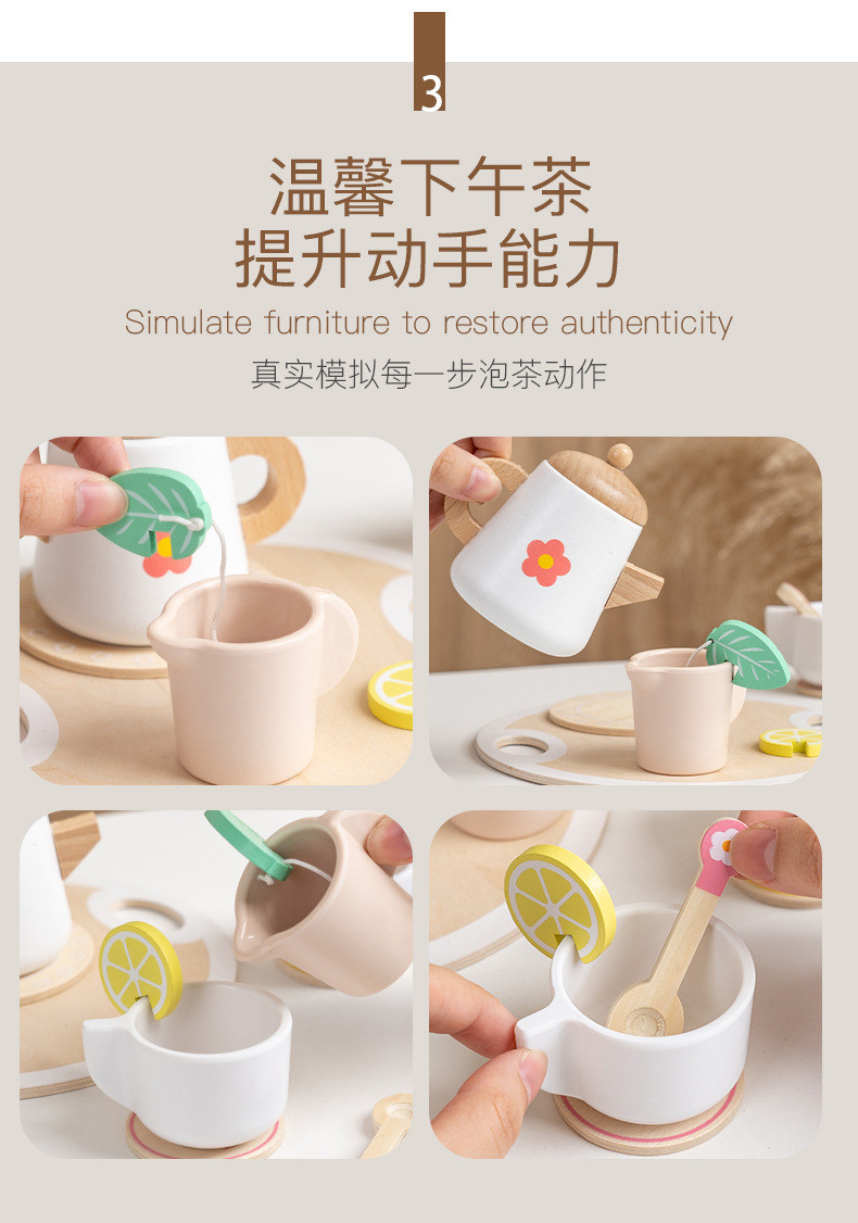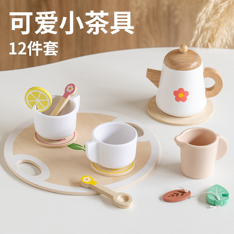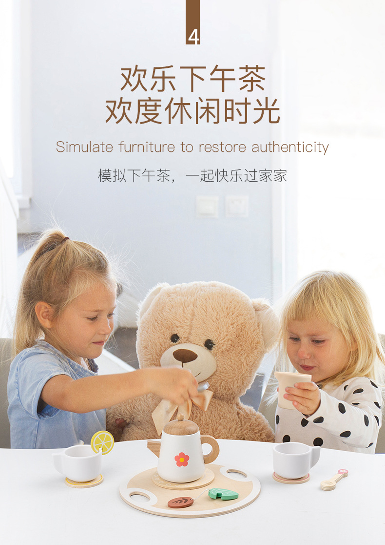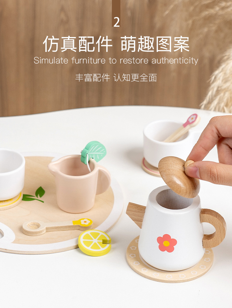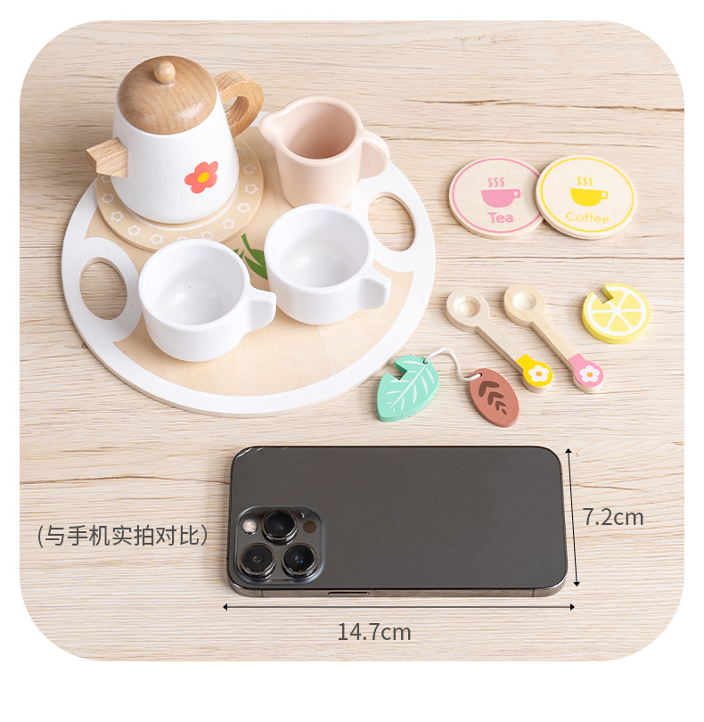 어린이 시뮬레이션 놀이 집 애프터눈 티 세트 대화 형 게임 차 세트인지 역할 놀이 나무 교육 장난감