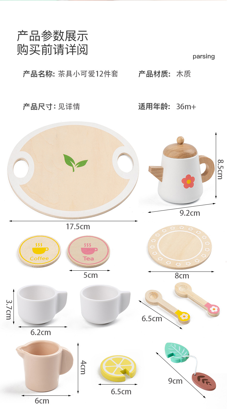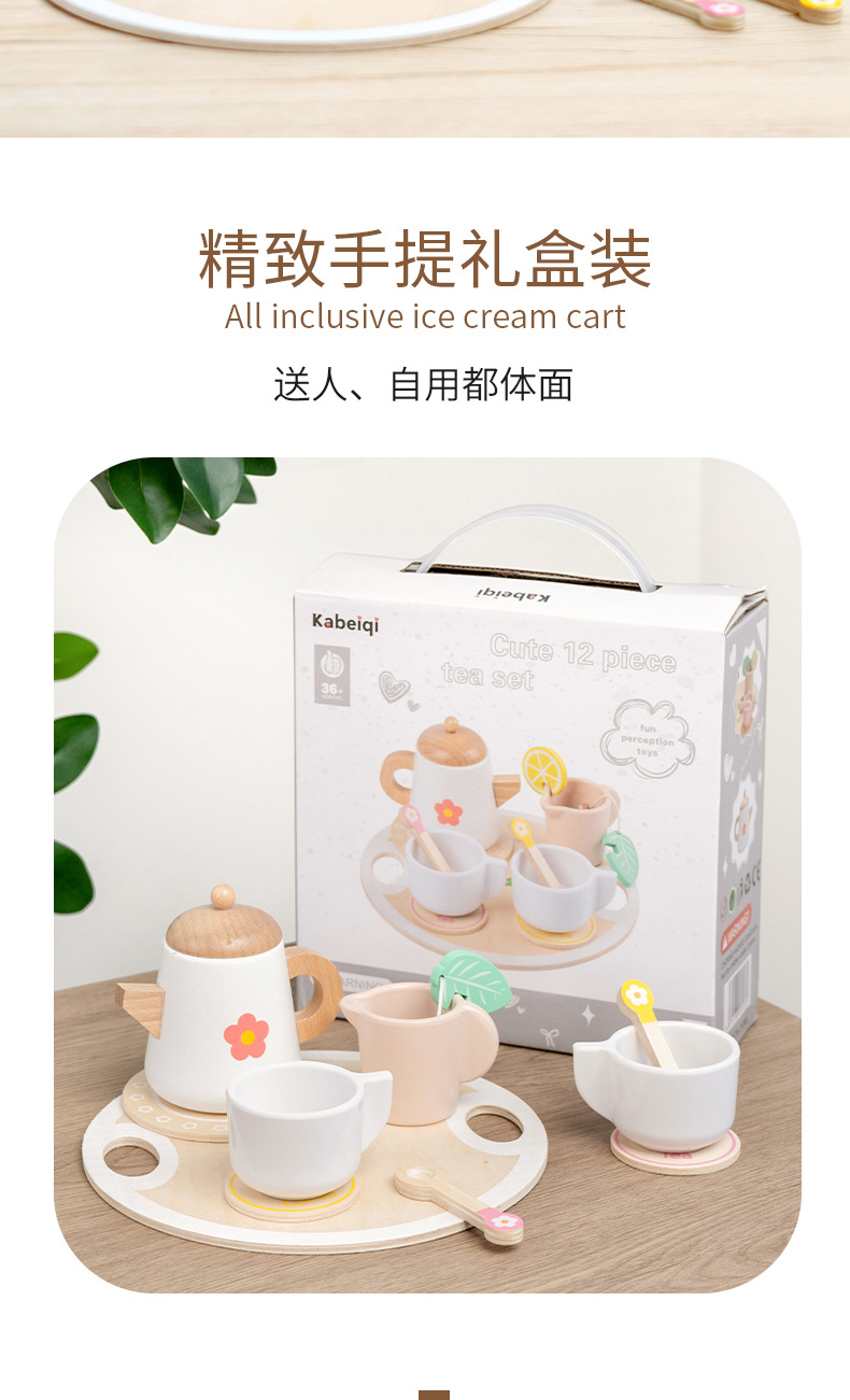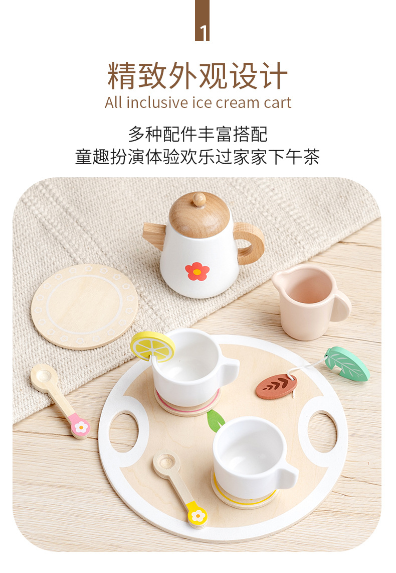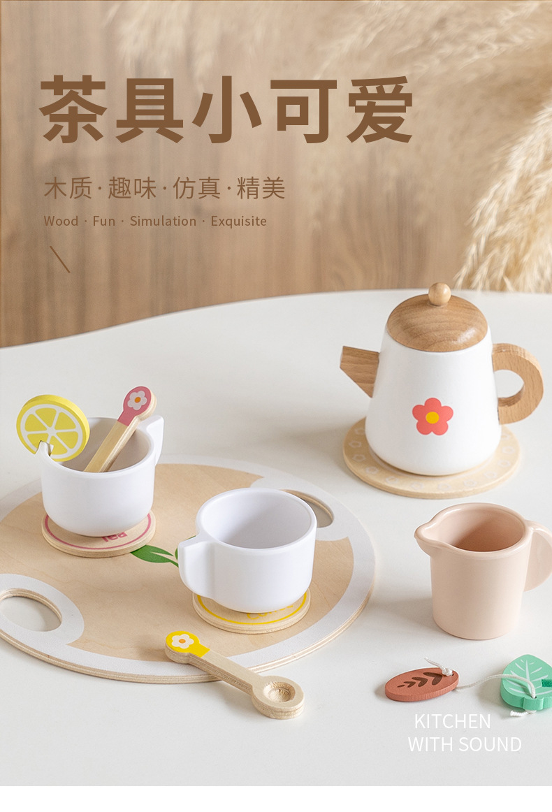 어린이 시뮬레이션 놀이 집 애프터눈 티 세트 대화 형 게임 차 세트인지 역할 놀이 나무 교육 장난감