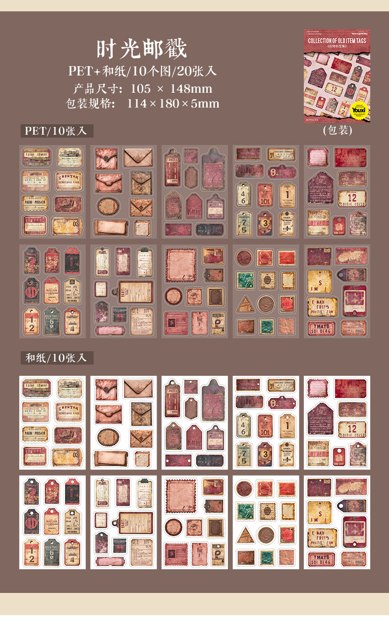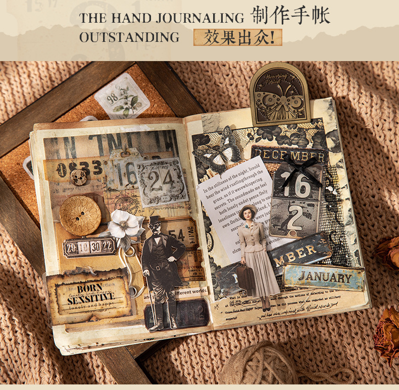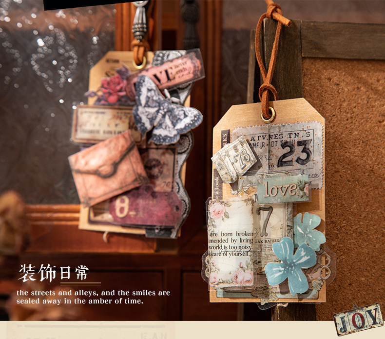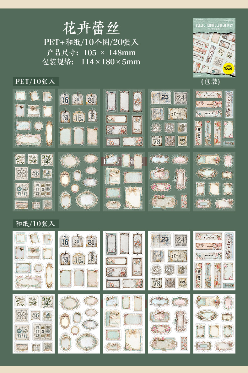 좋은 하루 이중 소재 다이 컷 스티커 오래된 라벨 세트 복고풍 소재 핸드북 diy 장식 콜라주스토어 가기
