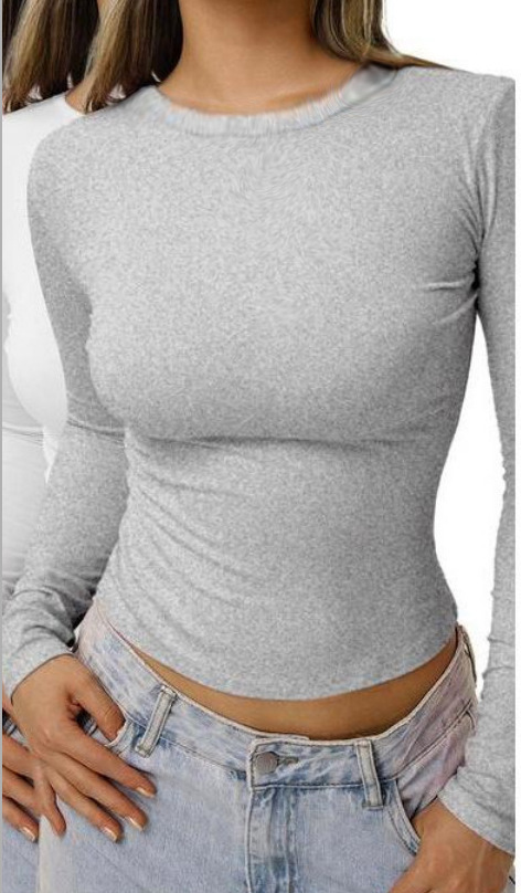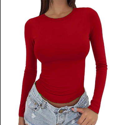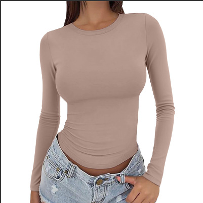 2025 Amazon 새로운 유럽과 미국 슬림 긴팔 밀크 실크 로우 라운드 넥 다용도 여성 의류