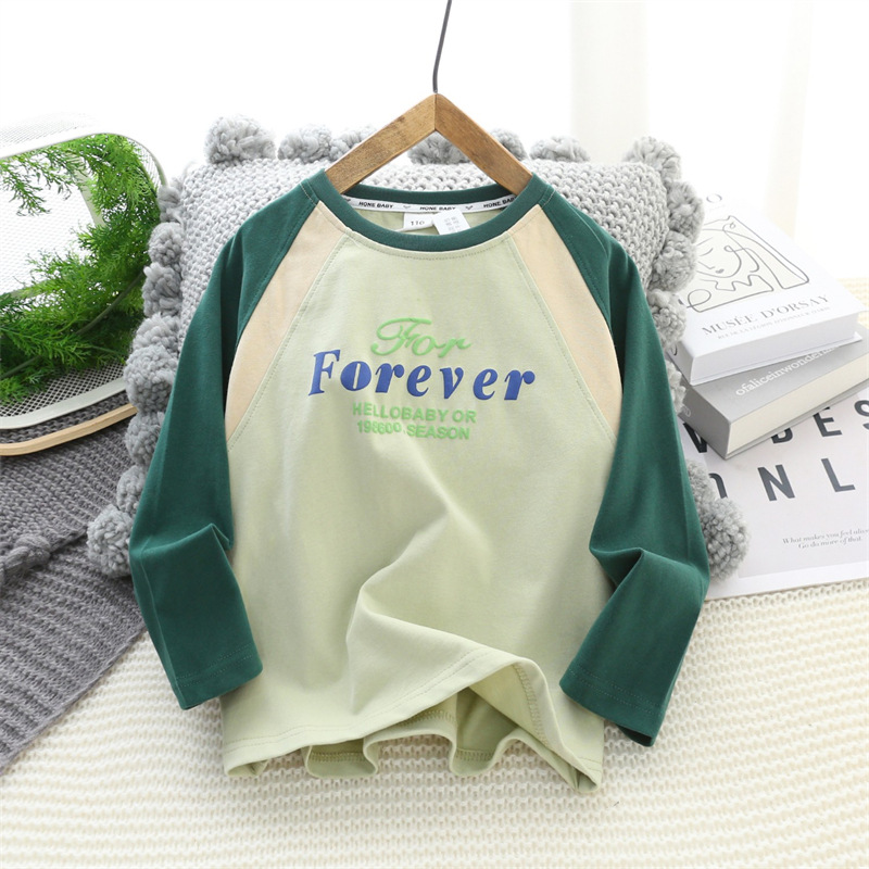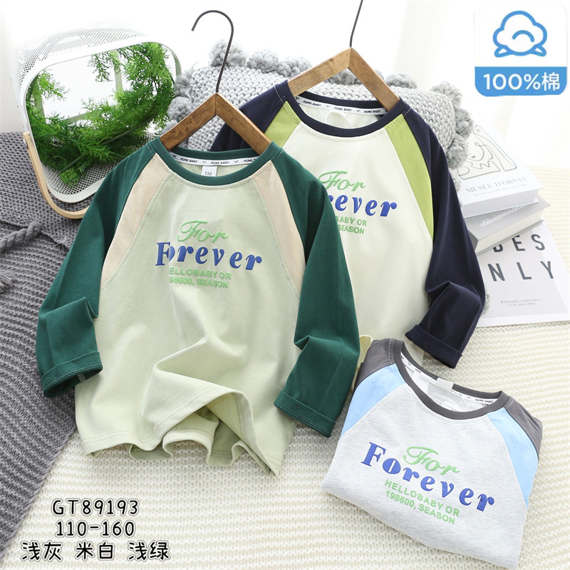 25 가을 어린이 대비 색 라글란 슬리브 바닥 셔츠 큰 어린이를위한 새로운 라운드 넥 긴팔 소년 티셔츠 gt89193