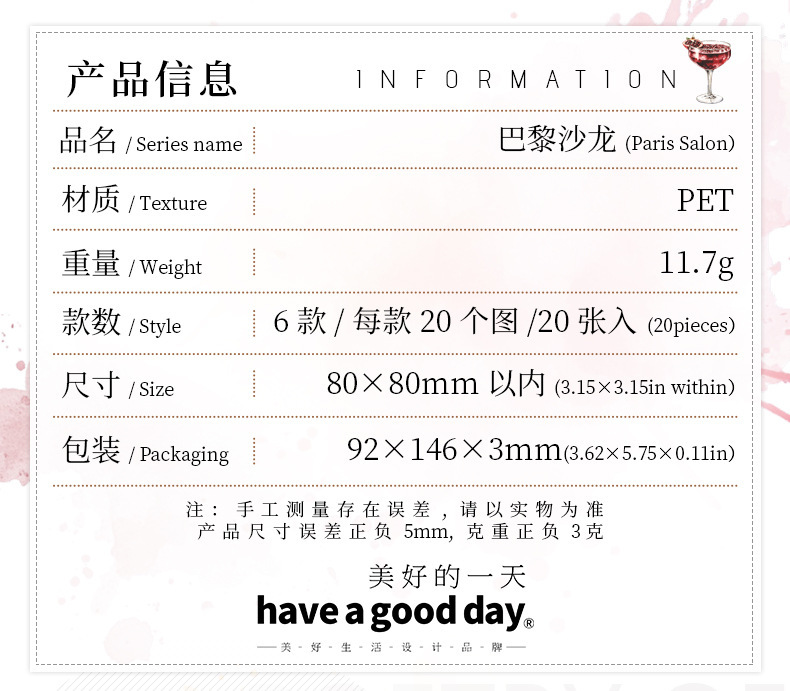 좋은 날 애완 동물 스티커 파리 살롱 시리즈 패션 테마 핸드북 diy 조경 장식 콜라주스토어 가기