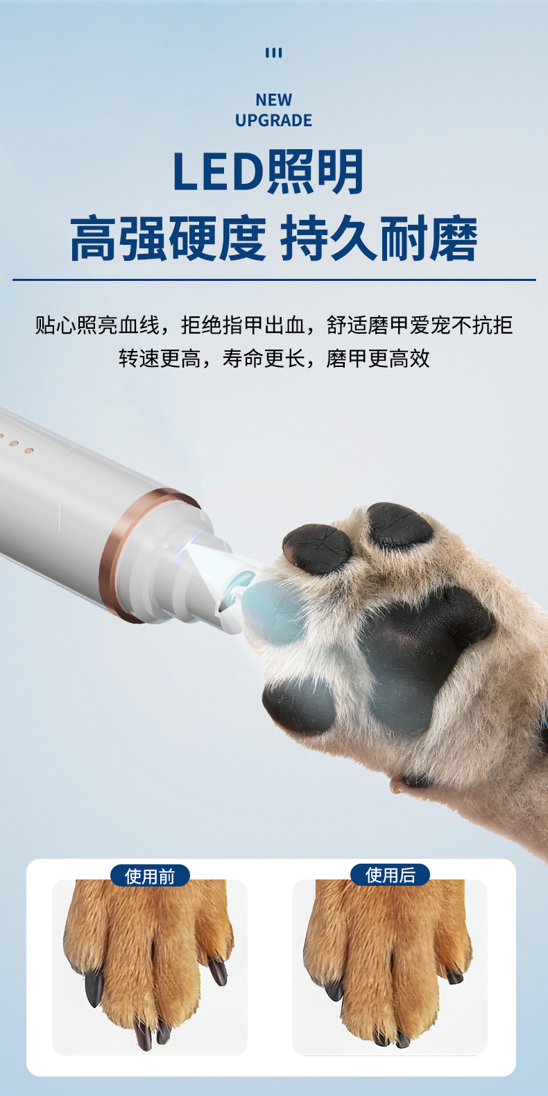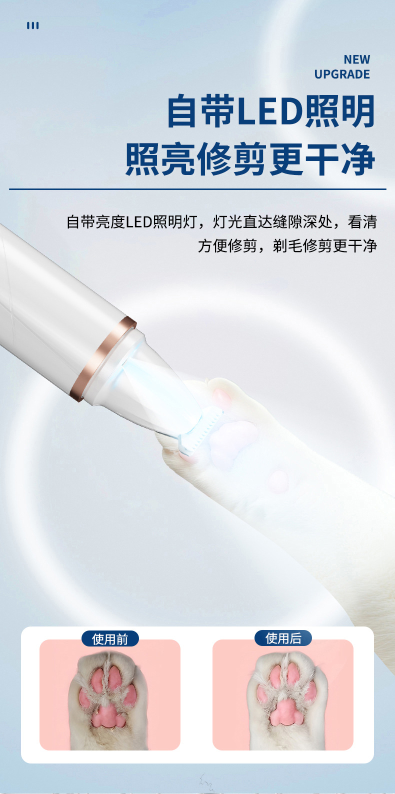 강아지 2-in-1 면도기, 고양이 발톱깎이, LED 조명, 충전식 이발기, 발톱깎이 및 면도기, 애완용품스토어 가기