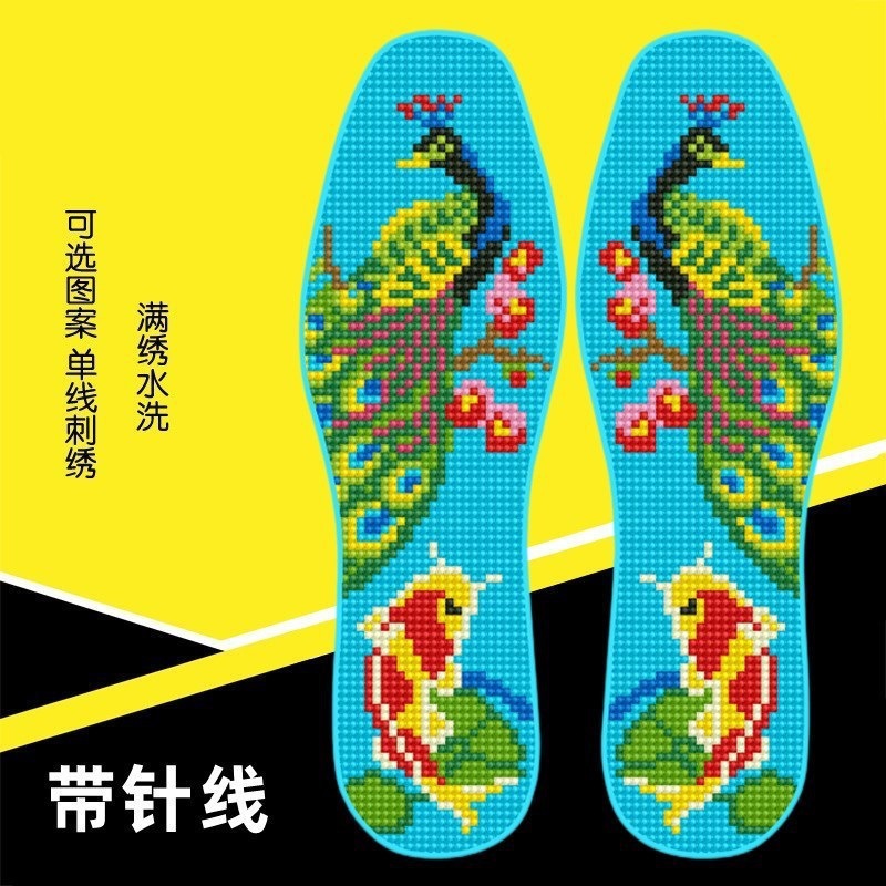 도매 자수 깔창, 자체 자수, 수제 남녀 바느질 밑창, 반제품, 여성 꽃 쇼 벨트, 감 십자수스토어 가기