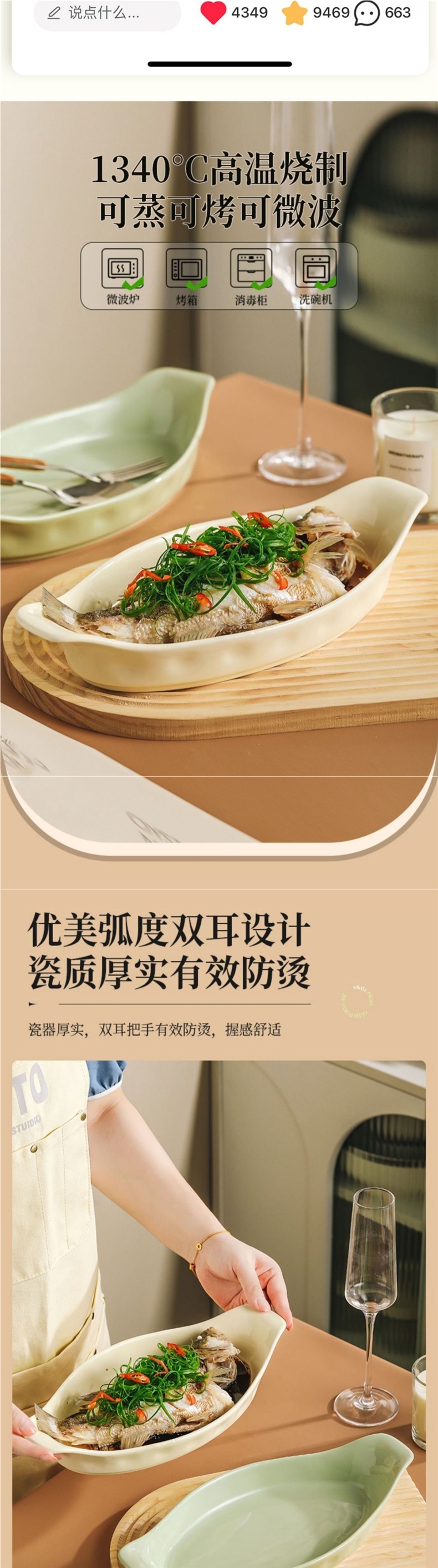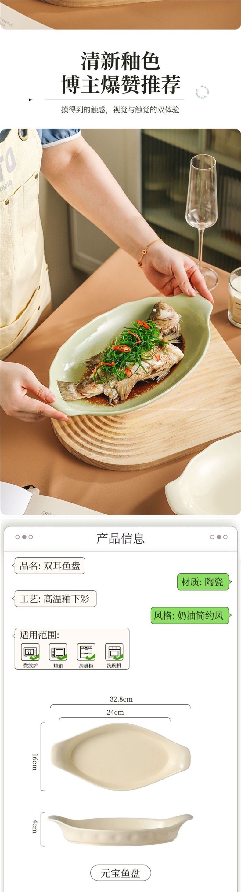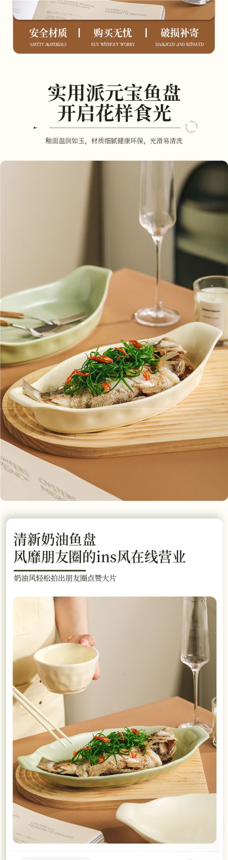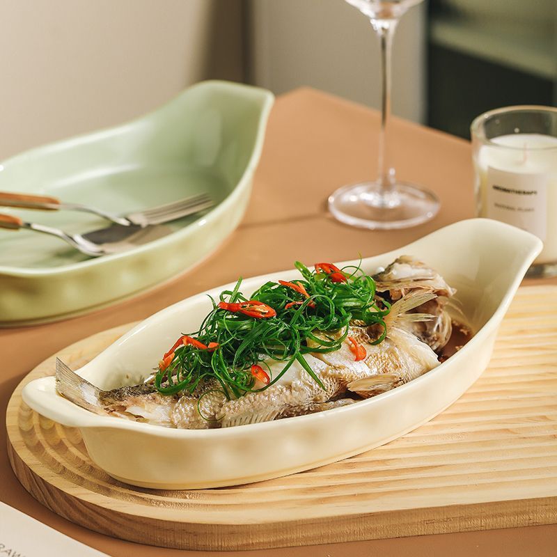 두꺼운 양귀 생선 접시, 가정용 찜 생선 접시, 가벼운 고급 수프 접시, 깊은 접시, 고급 대형 특수 두꺼운 접시스토어 가기