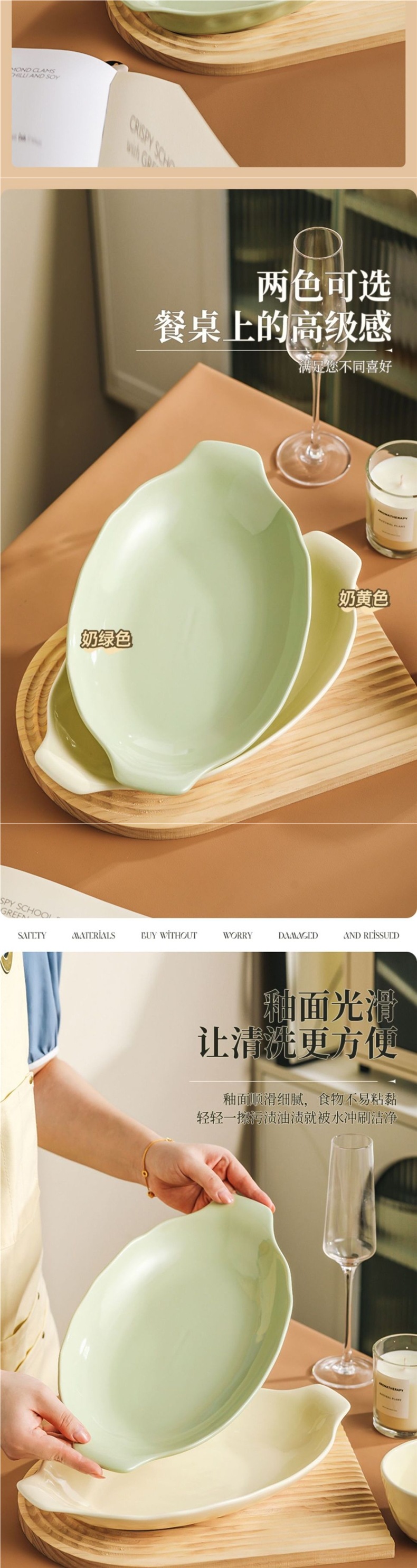 두꺼운 양귀 생선 접시, 가정용 찜 생선 접시, 가벼운 고급 수프 접시, 깊은 접시, 고급 대형 특수 두꺼운 접시