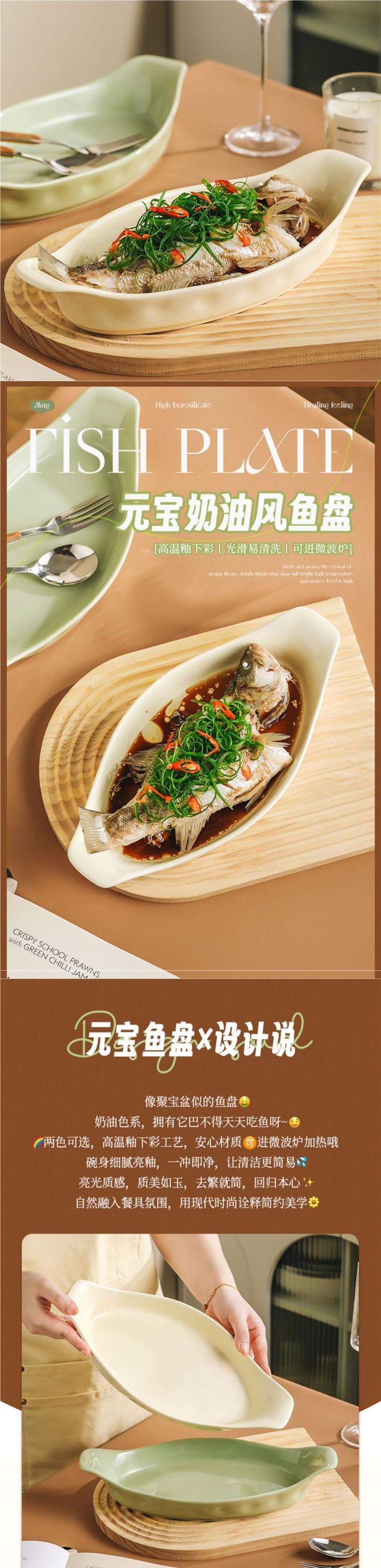• 12inch 위안바오 생선 접시-밀크 그린