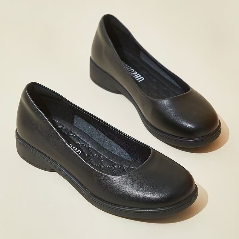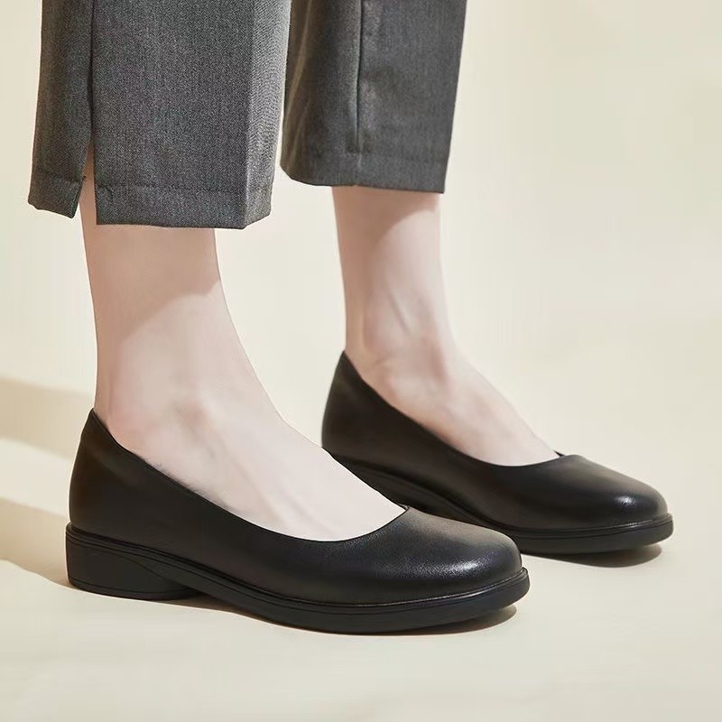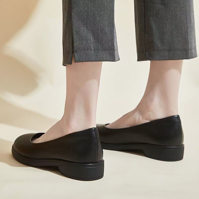 둥근 발가락 낮은 굽 두꺼운 밑창 얕은 가죽 신발 플랫 여성 2025 봄 싱글 신발 부드러운 밑창 작업 편안한 작업 신발스토어 가기