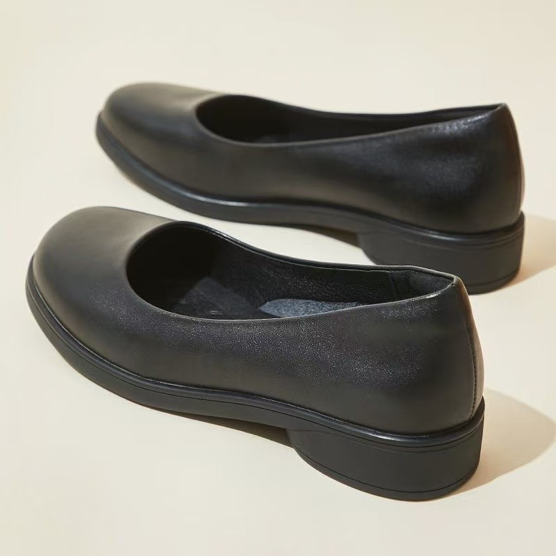 둥근 발가락 낮은 굽 두꺼운 밑창 얕은 가죽 신발 플랫 여성 2025 봄 싱글 신발 부드러운 밑창 작업 편안한 작업 신발