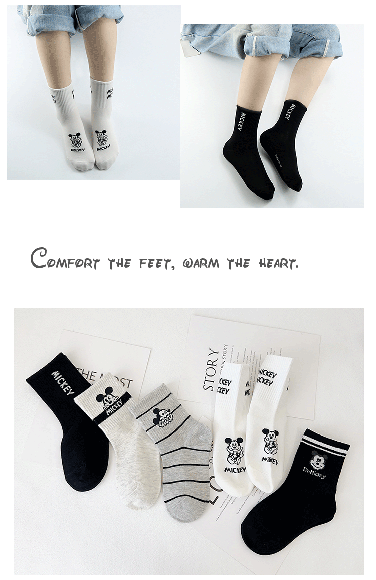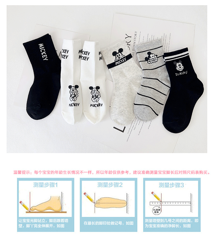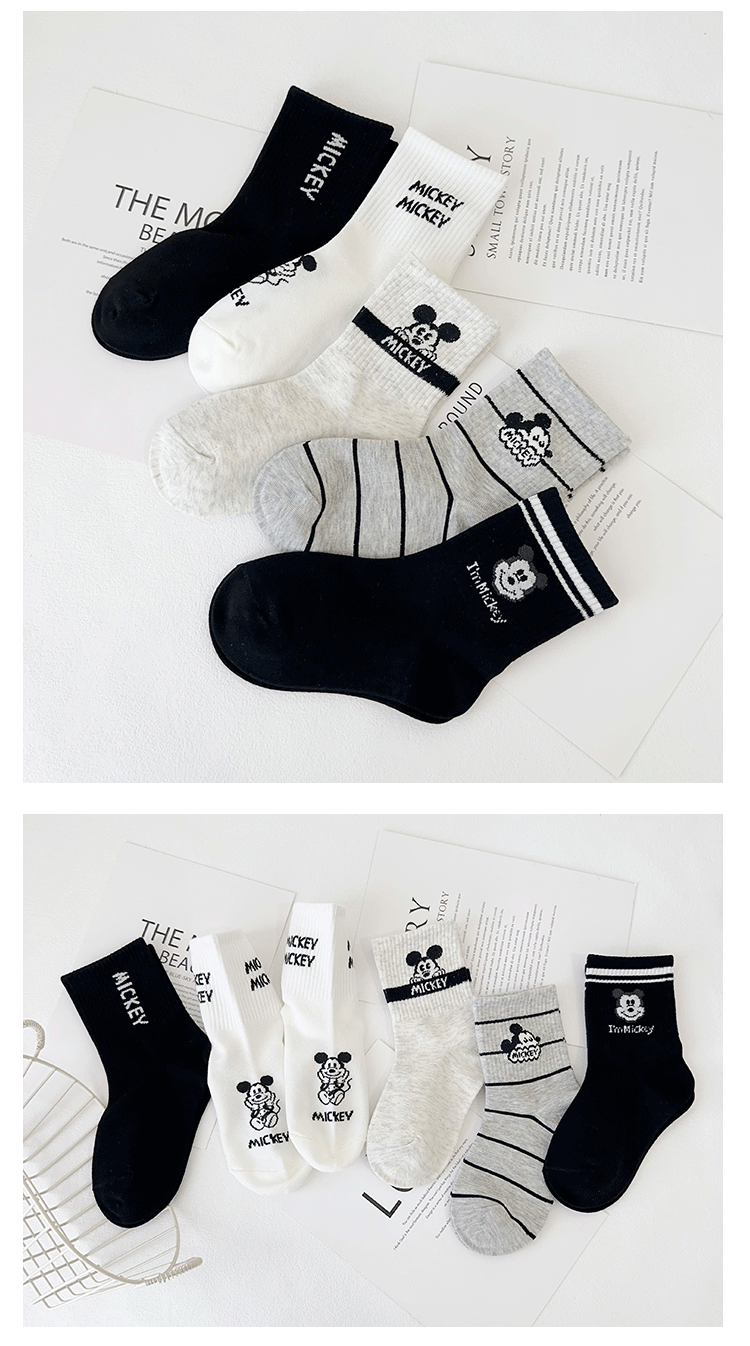 Yishuangshuang 어린이 양말 가을, 겨울 새로운 만화 미키 중간 튜브 양말 빗질면 귀여운 미키 마우스 아기 양말