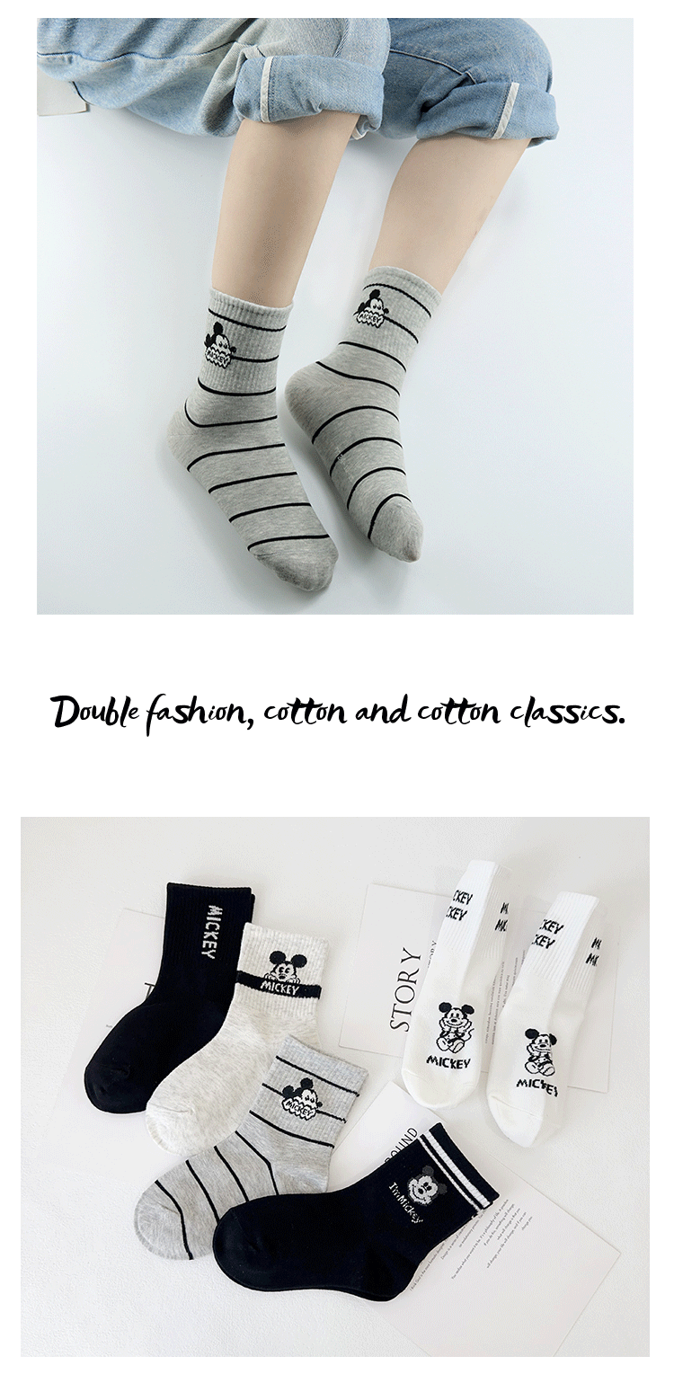 Yishuangshuang 어린이 양말 가을, 겨울 새로운 만화 미키 중간 튜브 양말 빗질면 귀여운 미키 마우스 아기 양말스토어 가기