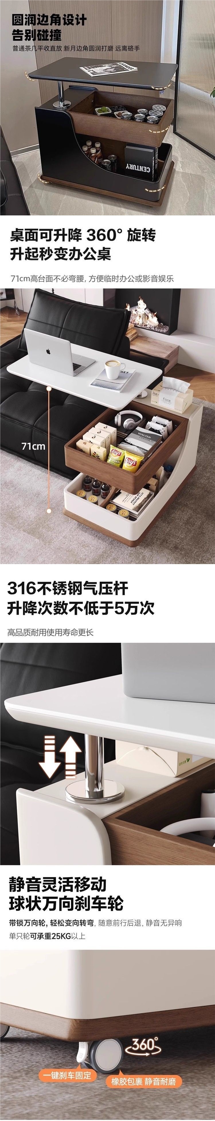 도매 모바일 커피 테이블 작은 아파트 거실 리프팅 다기능 사이드 캐비닛 소파 카트 간단한 현대 가정용 소형 카트스토어 가기