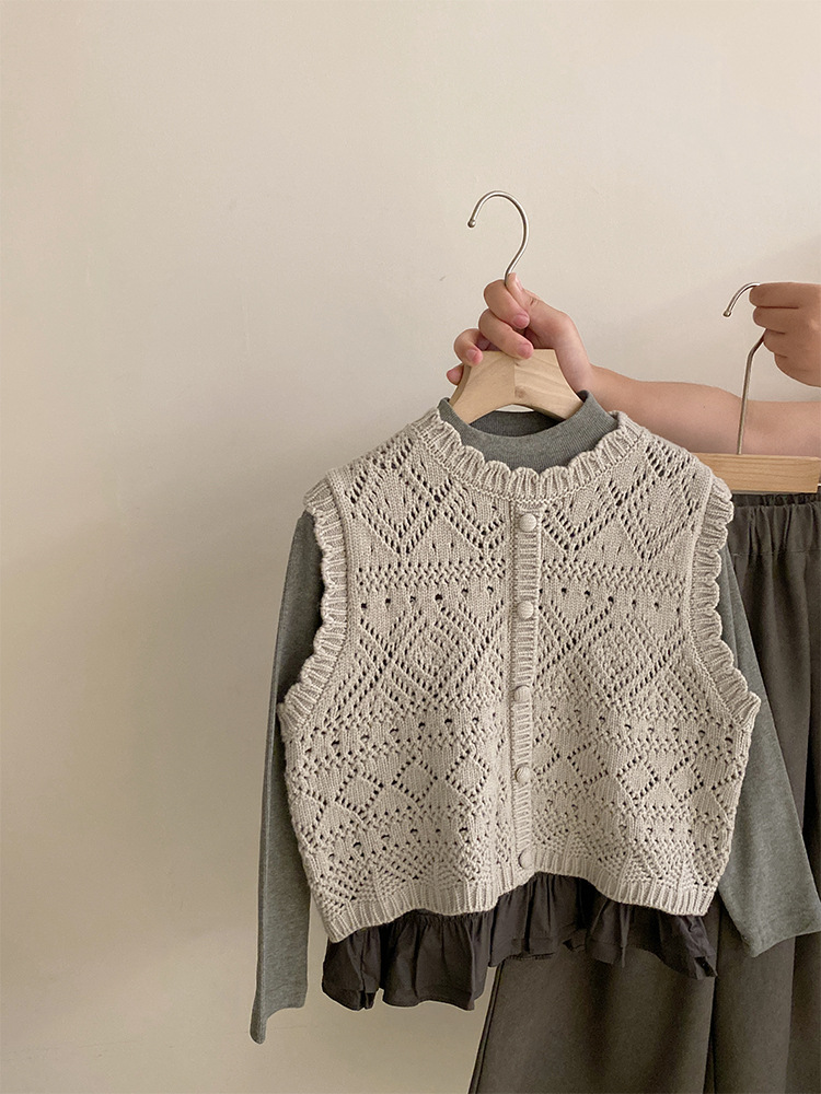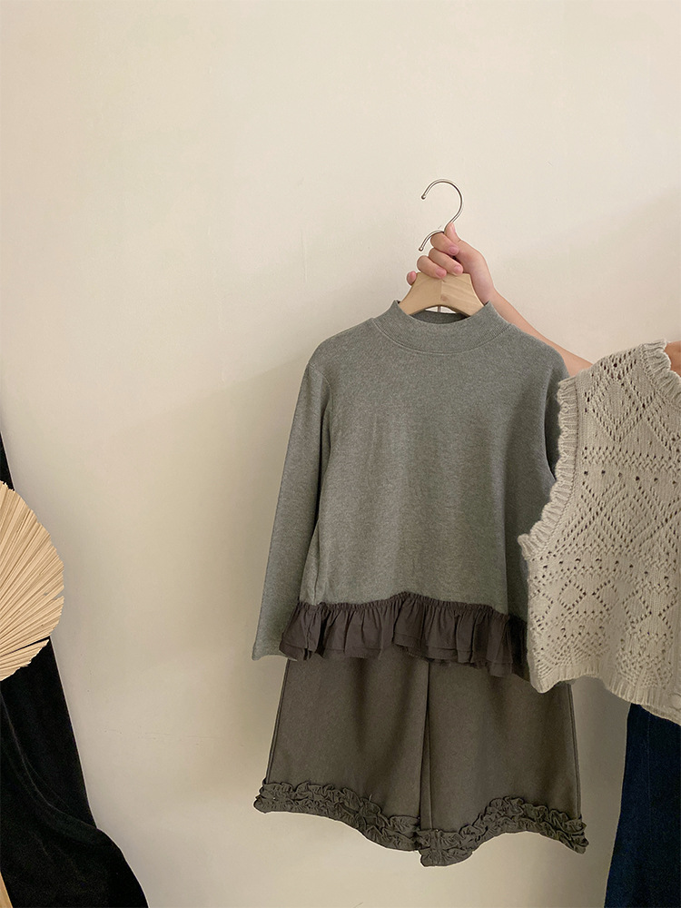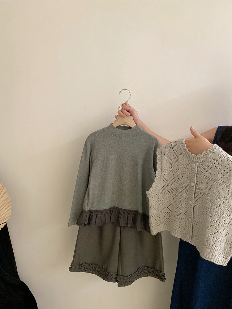 여자 한국 스타일 가을 신작 니트 조끼 솔리드 컬러 바닥 셔츠 2025 레이스 와이드 레그 캐주얼 바지 투피스 트렌디 세트스토어 가기