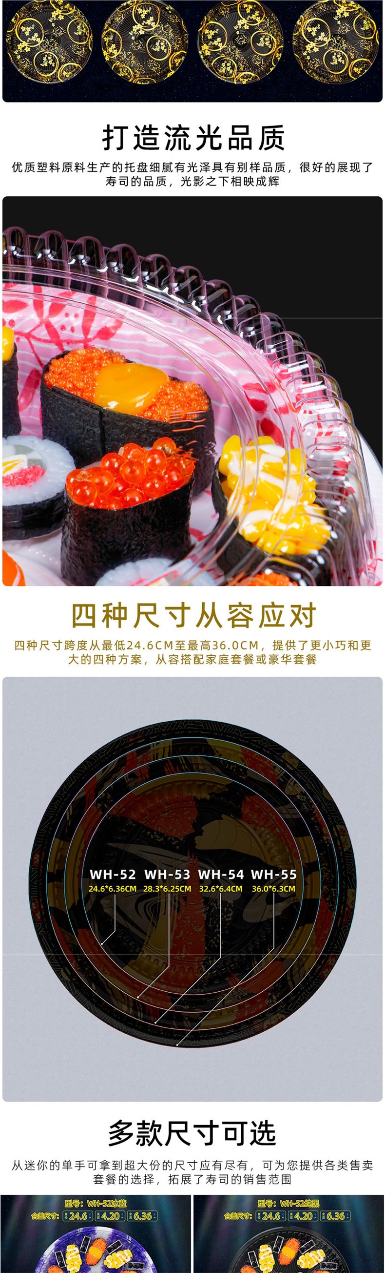 일회용 스시 상자 디스크 사시미 플래터 포장 상자 플라스틱 상업용 원형 패키지 포장 고급 접시