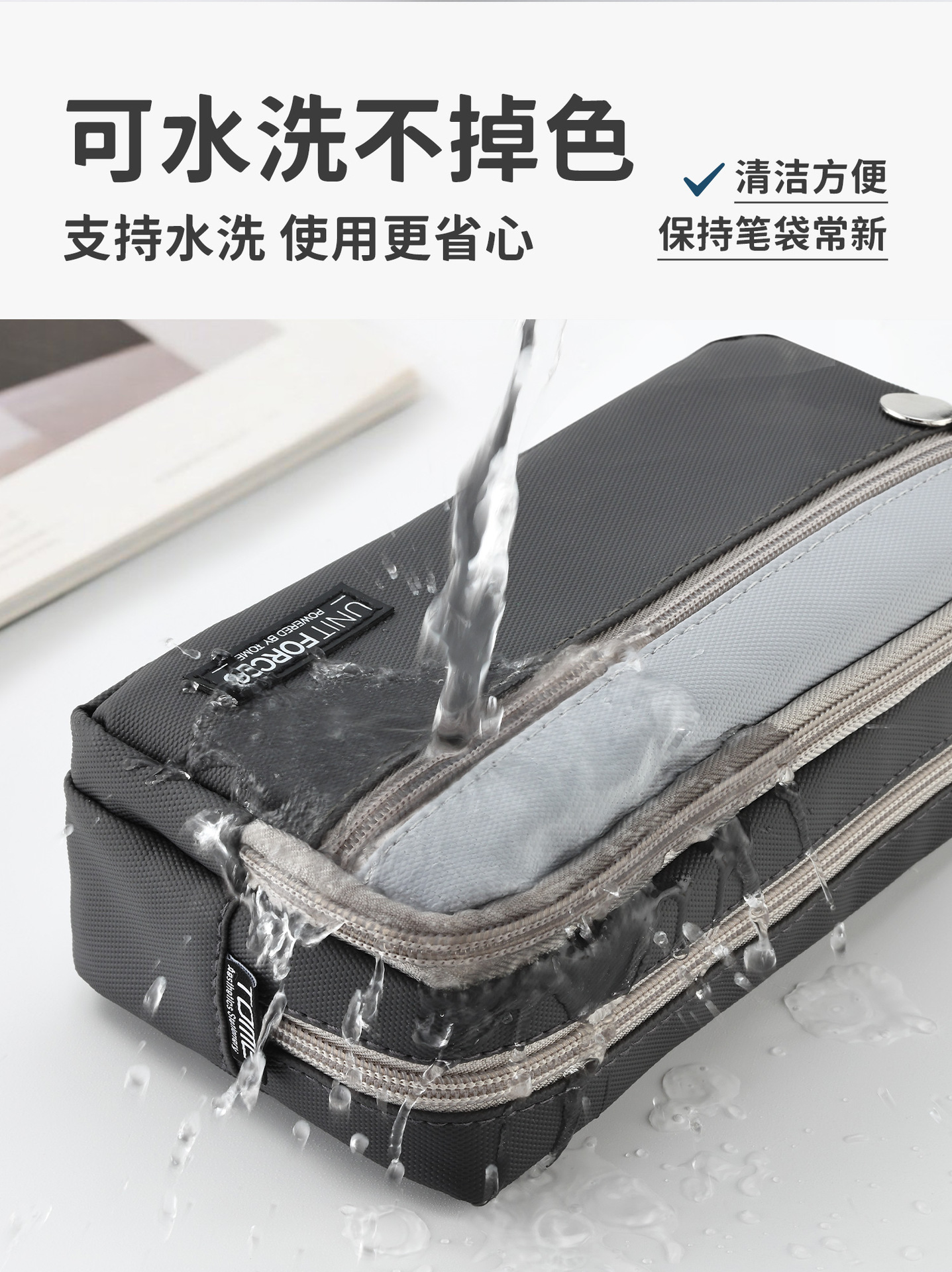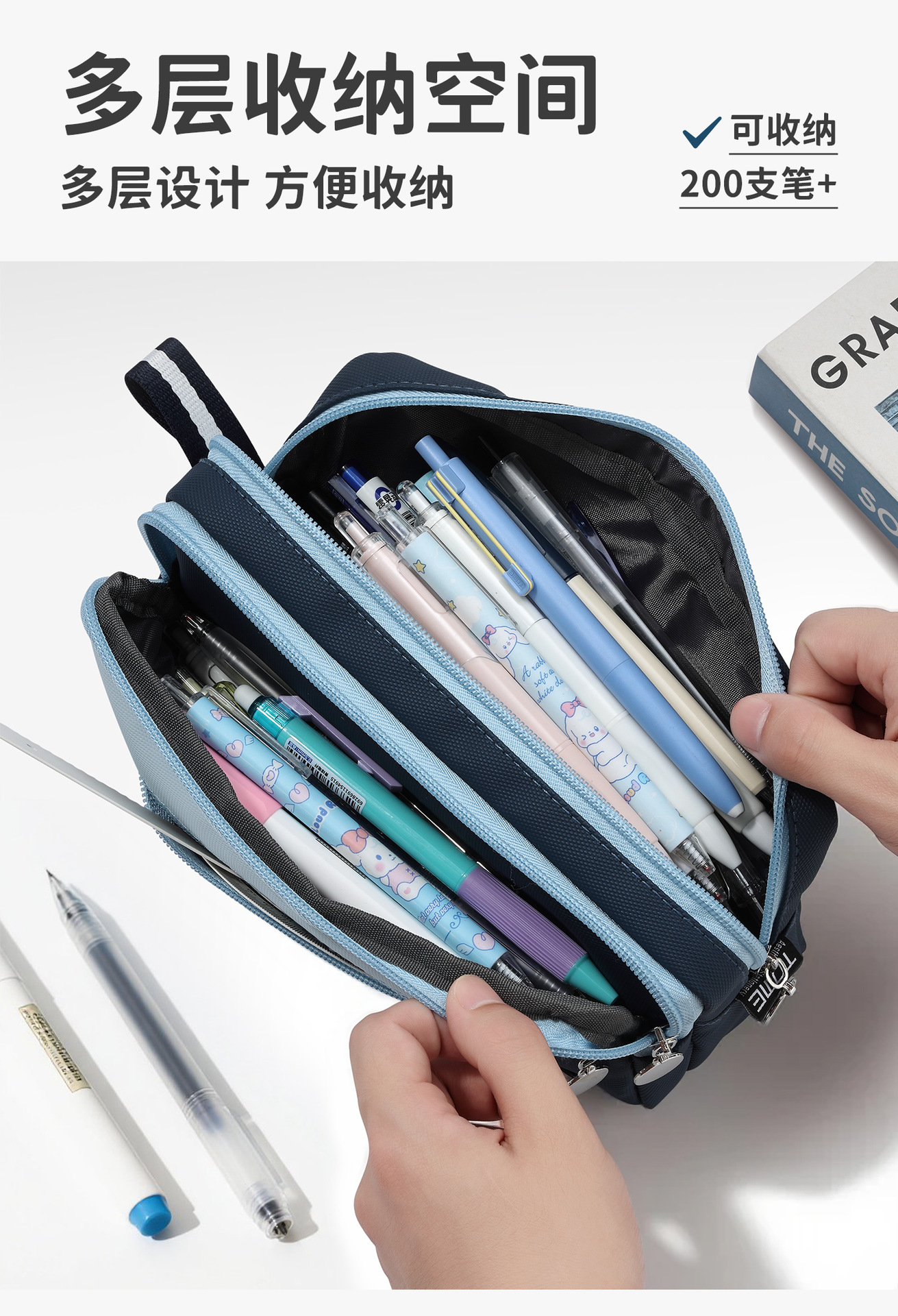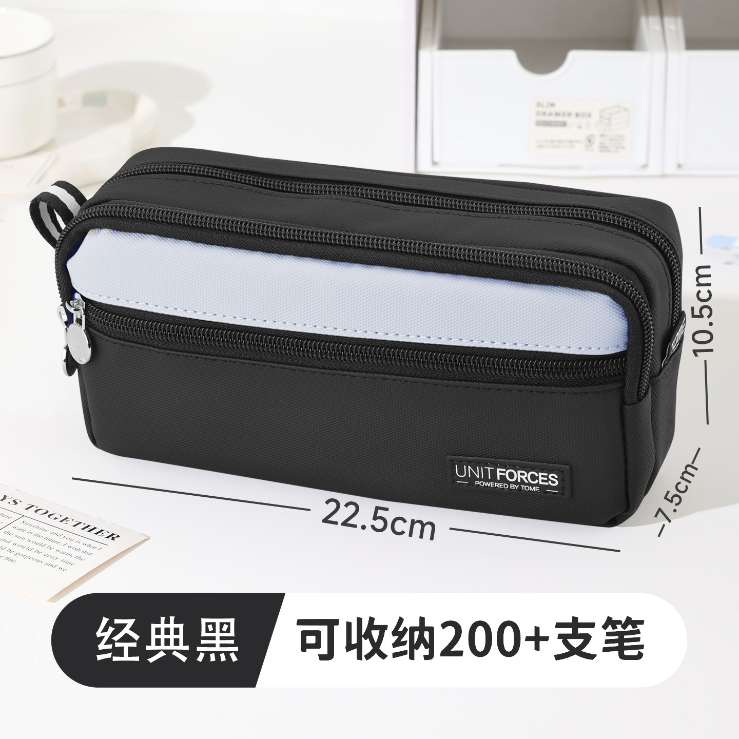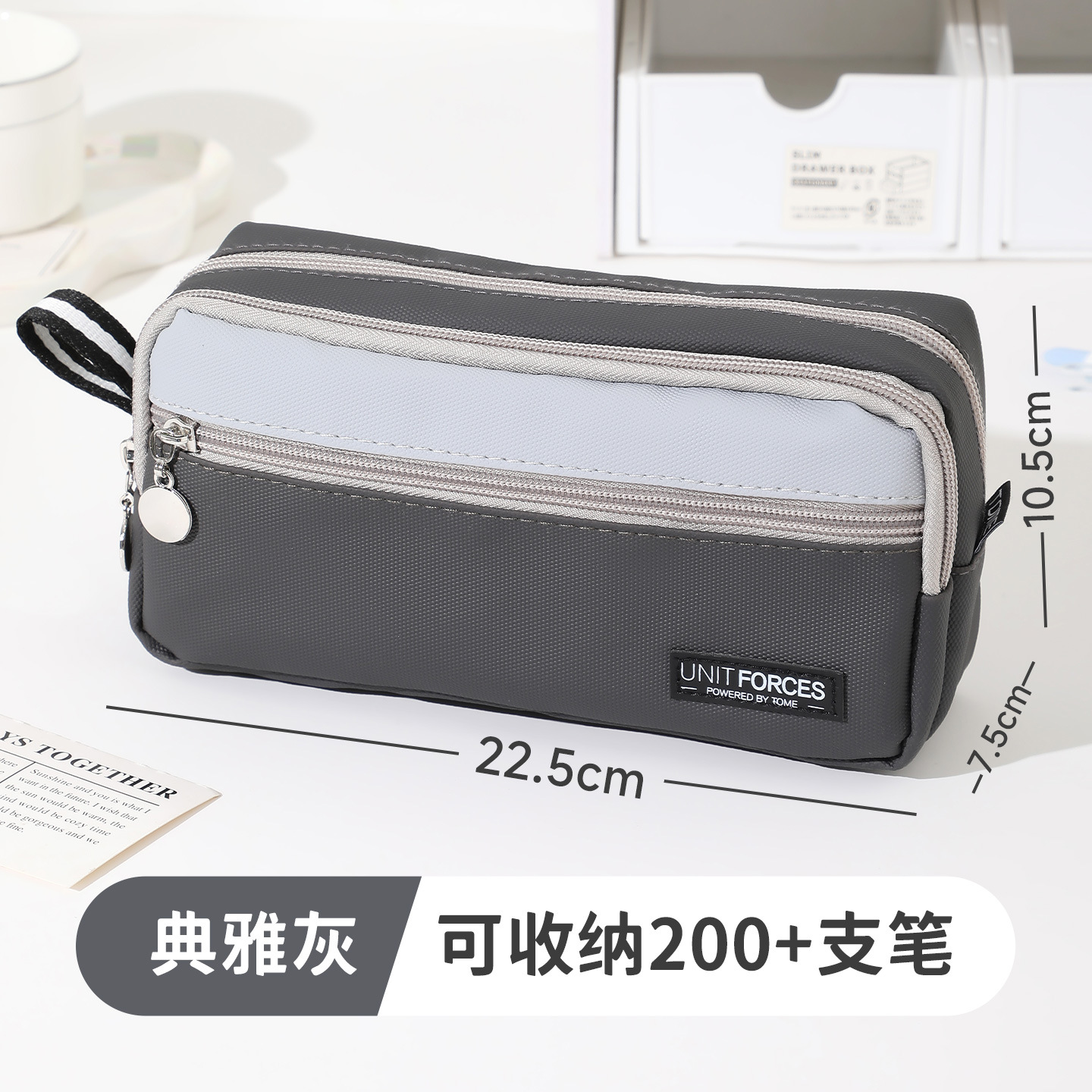 TOME 남학생을 위한 다층 방수 PU 가죽 연필 가방, 고등학생 및 중학생을 위한 고급스럽고 단순한 단색 단순 문구 가방