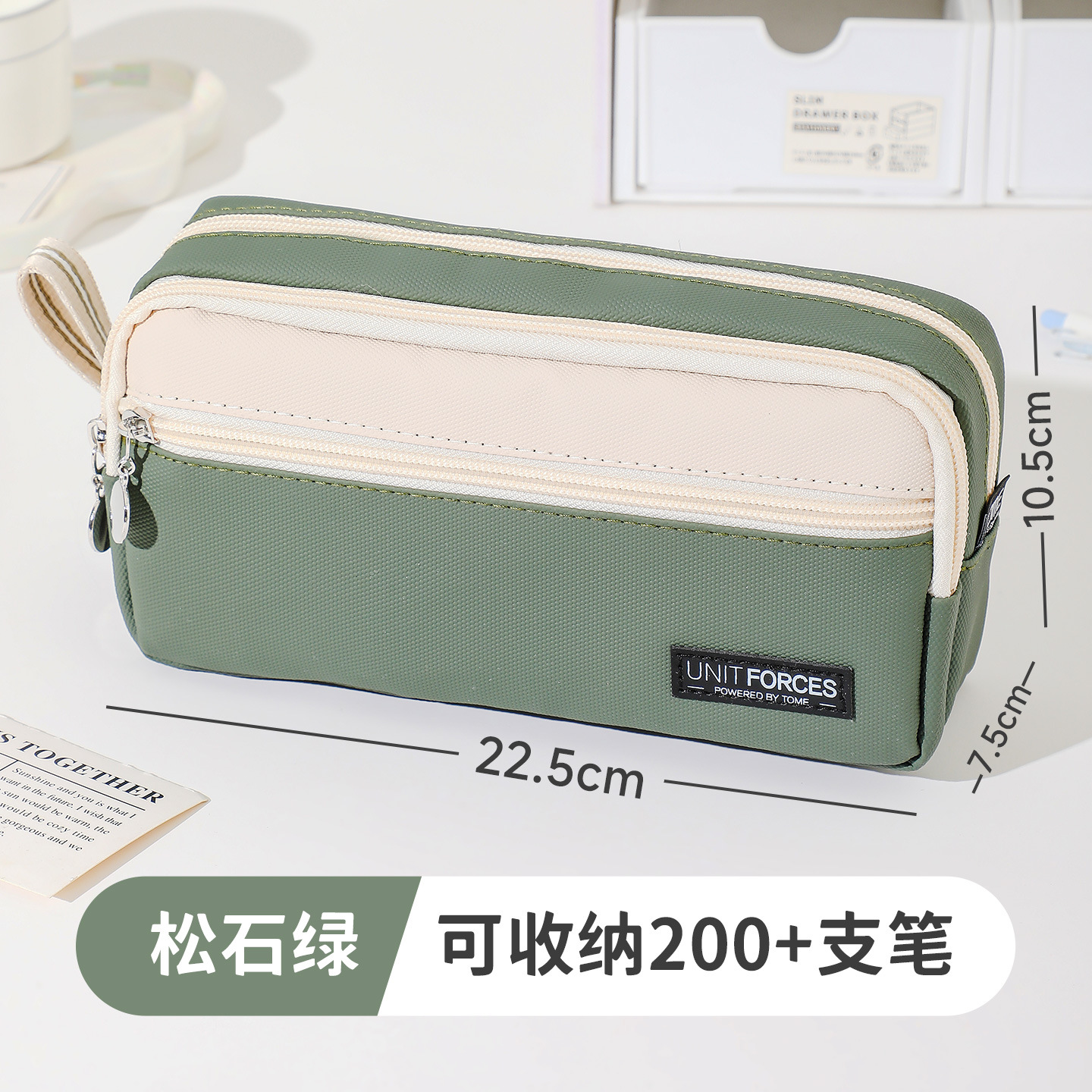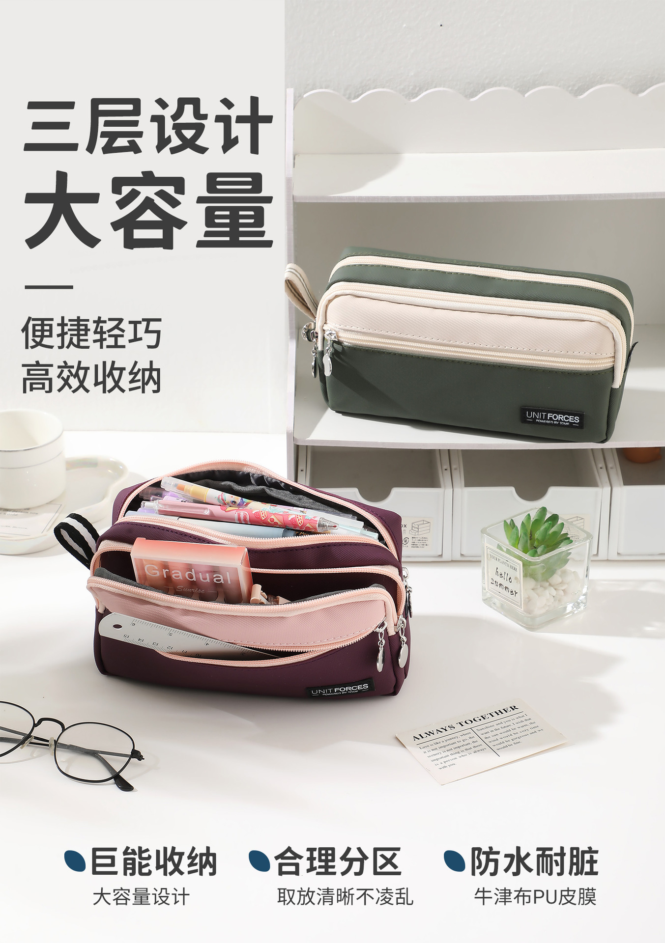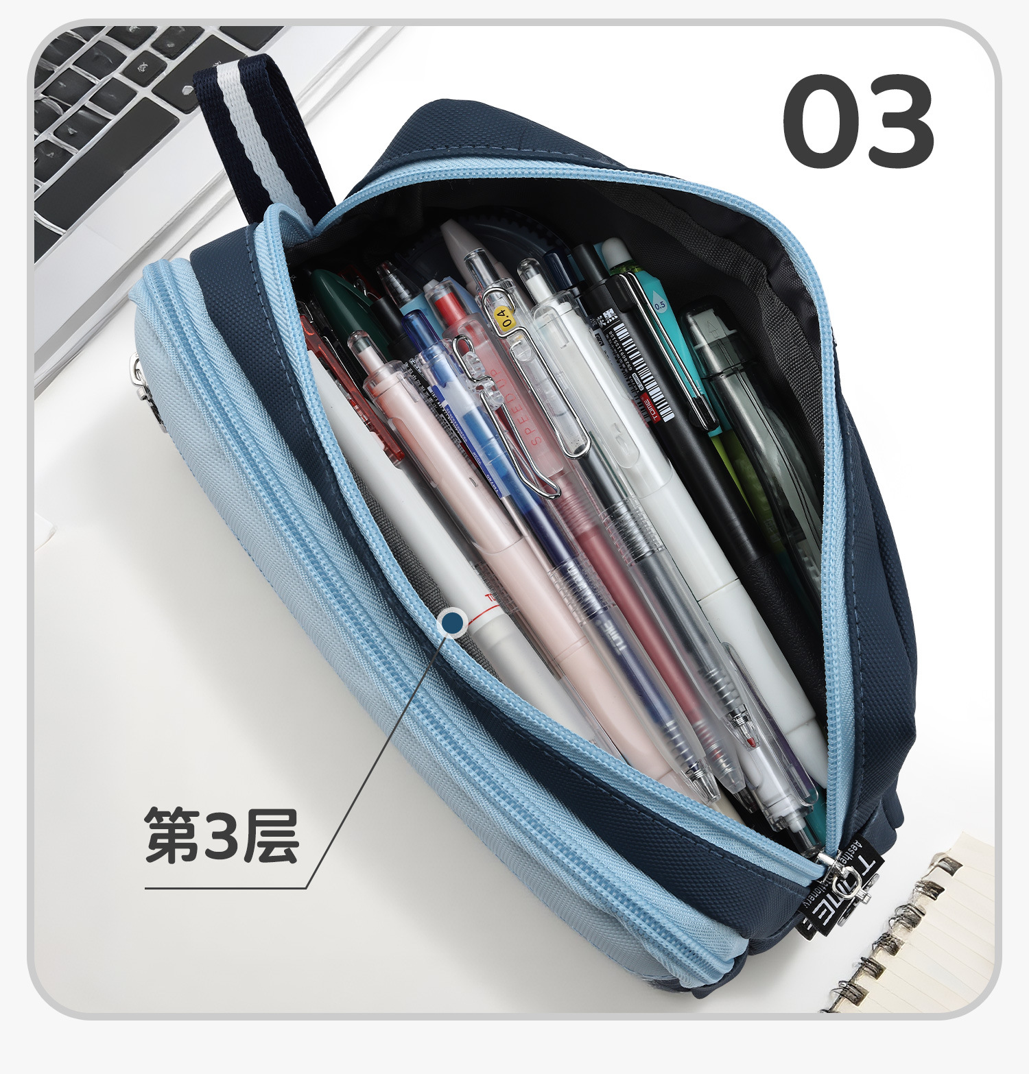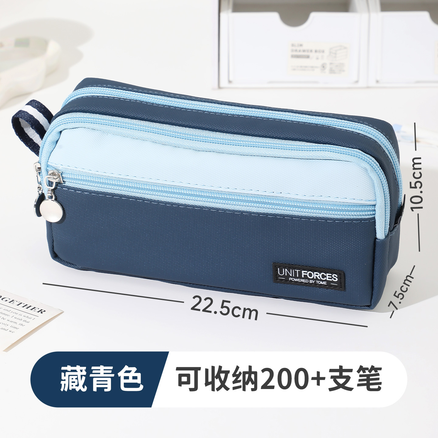 TOME 남학생을 위한 다층 방수 PU 가죽 연필 가방, 고등학생 및 중학생을 위한 고급스럽고 단순한 단색 단순 문구 가방